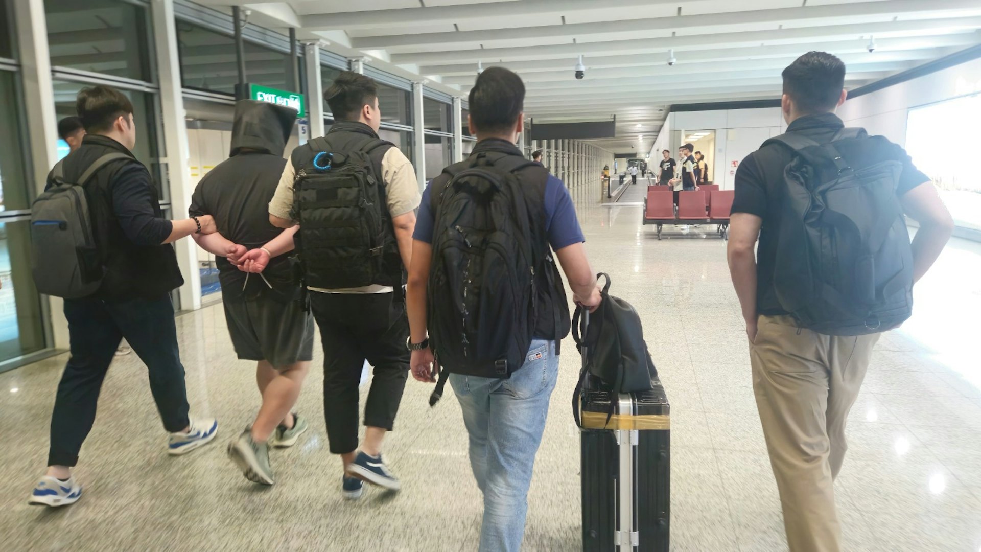 `" z: F7 A I2 z1 u A# C& Ptvb now,tvbnow,bttvb香港警察於香港國際機場將疑犯押署扣查。(警方圖片)