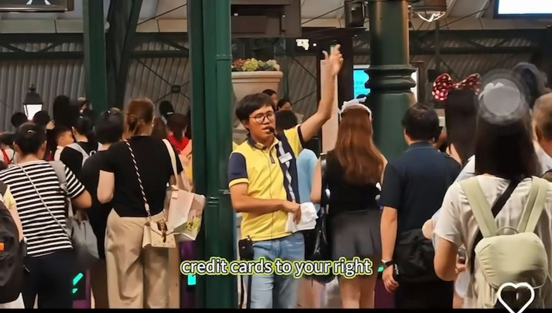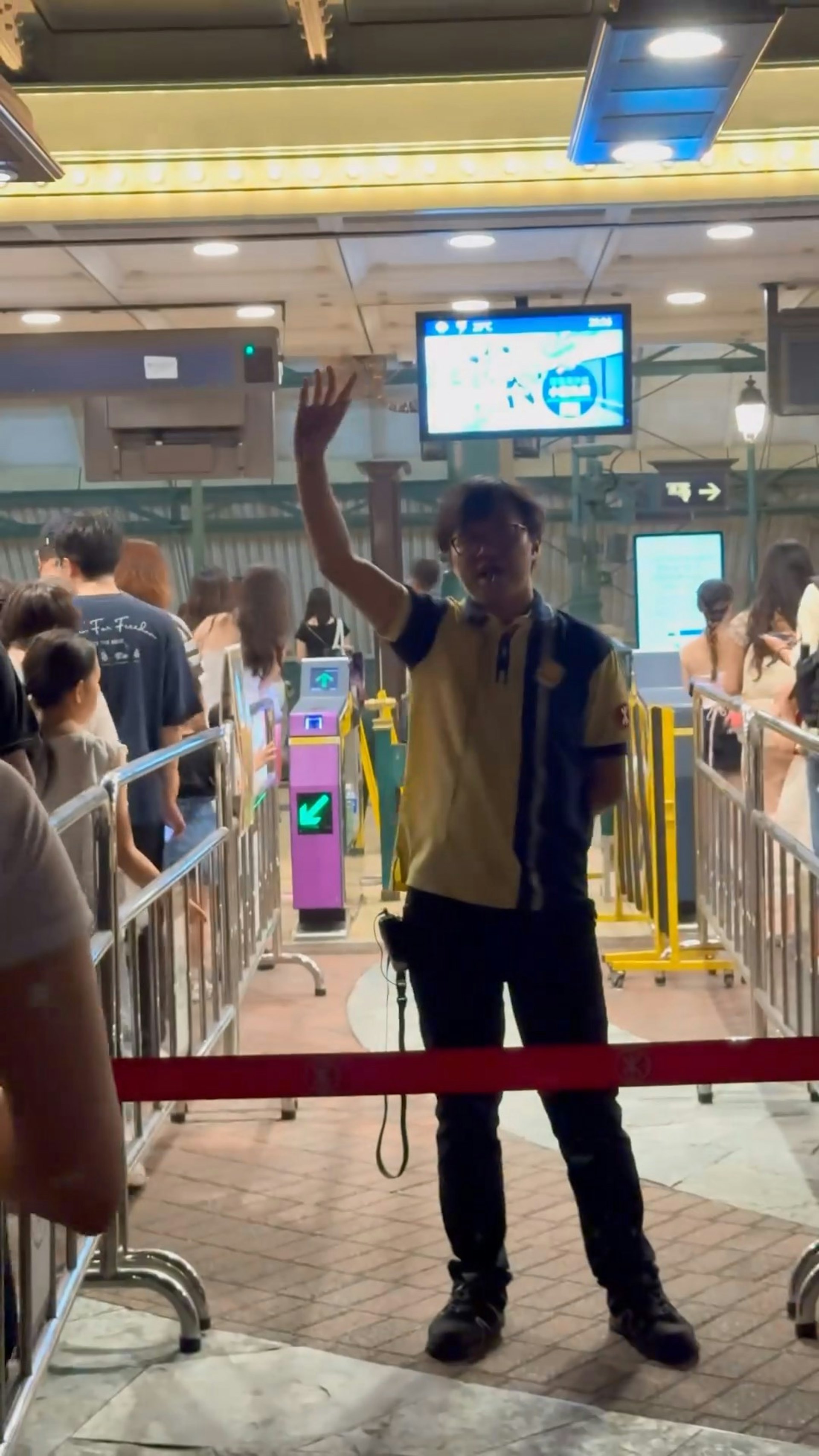 3 _3 r1 ] H! L+ e* _內地小紅書及本港社交平台近日瘋傳多段影片,港鐵香港迪士尼站1名男職員用普通話、粵語及英語,以「Rap」方法作出分流指示,生動有趣。(Threads影片截圖)