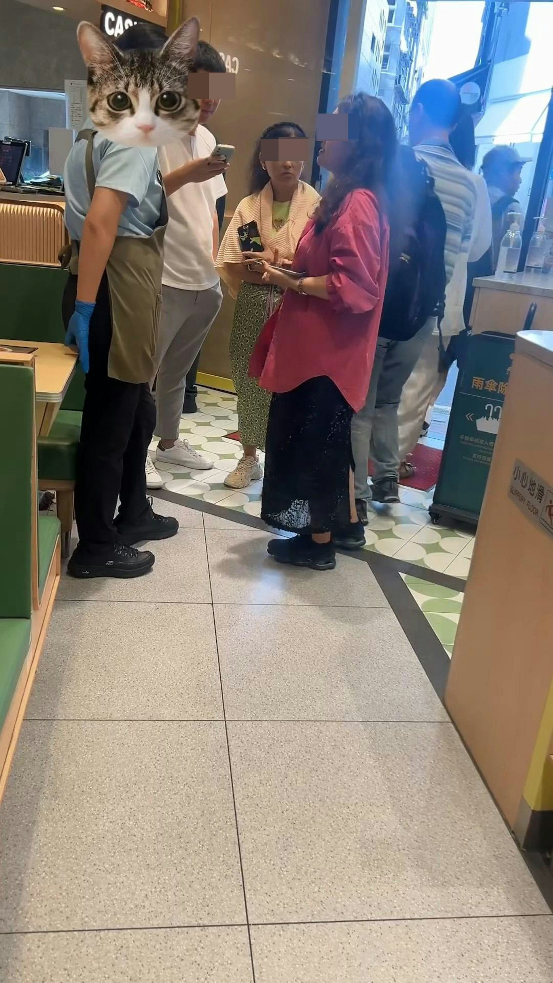 7 u) P) D5 ] n- E茶餐廳內兩男一女正包圍1名女員工爭執。(ngayeezuky/Threads影片截圖)