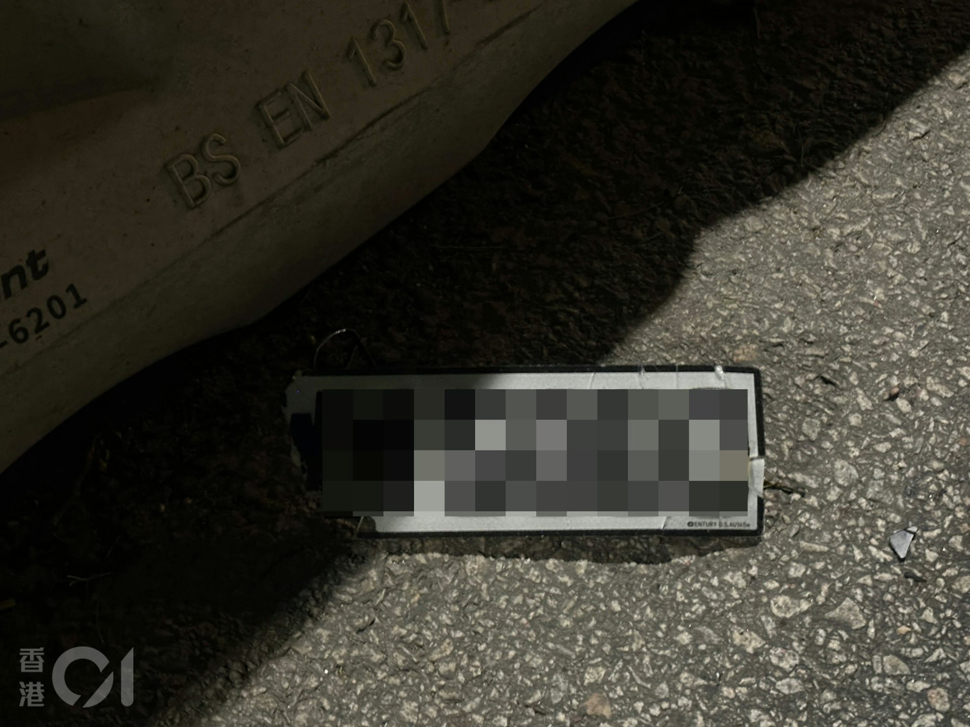 # o: _ ^2 A4 t& c/ ~os.tvboxnow.com現場遺下一個車牌及奧迪私家車車頭標誌。(王譯揚攝) |