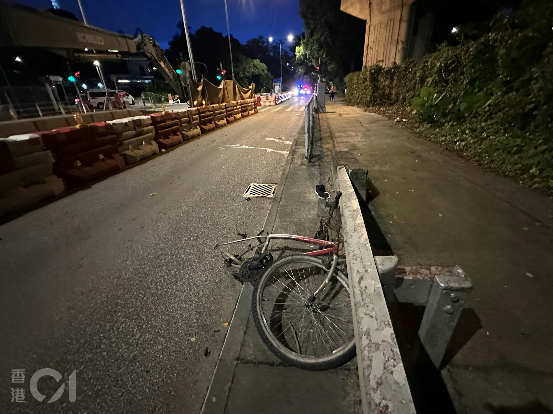現場可見,單車被撞至零件四散,車輪飛上行人路,掛在一個鐵網上,離地約2米,座椅亦飛至對面線。地上亦遺留一灘血跡、一個車牌及奧迪私家車標誌。