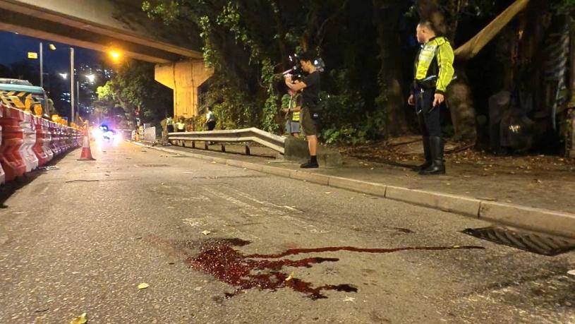 現場所見,單車被撞至「解體」,支架變形外,座椅飛至對面線,而車轆更掛在行人路邊的鐵欄上。此外,地面亦遺下一灘血迹、假牙、一個車牌及Audi私家車標誌等。警方正調查車禍原因及追緝涉案私家車及其司機。