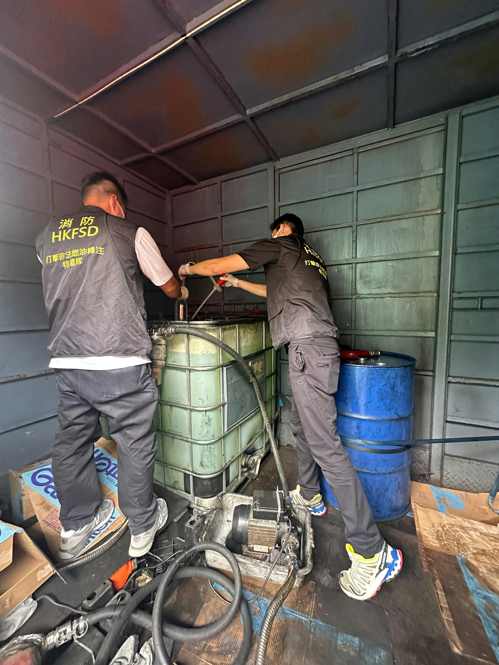 消防處發新聞稿,今日(3日)上午在葵泰路搗破一個非法加油站,共檢獲約2,400公升柴油,市值超過60,000元,並檢控一名男子。