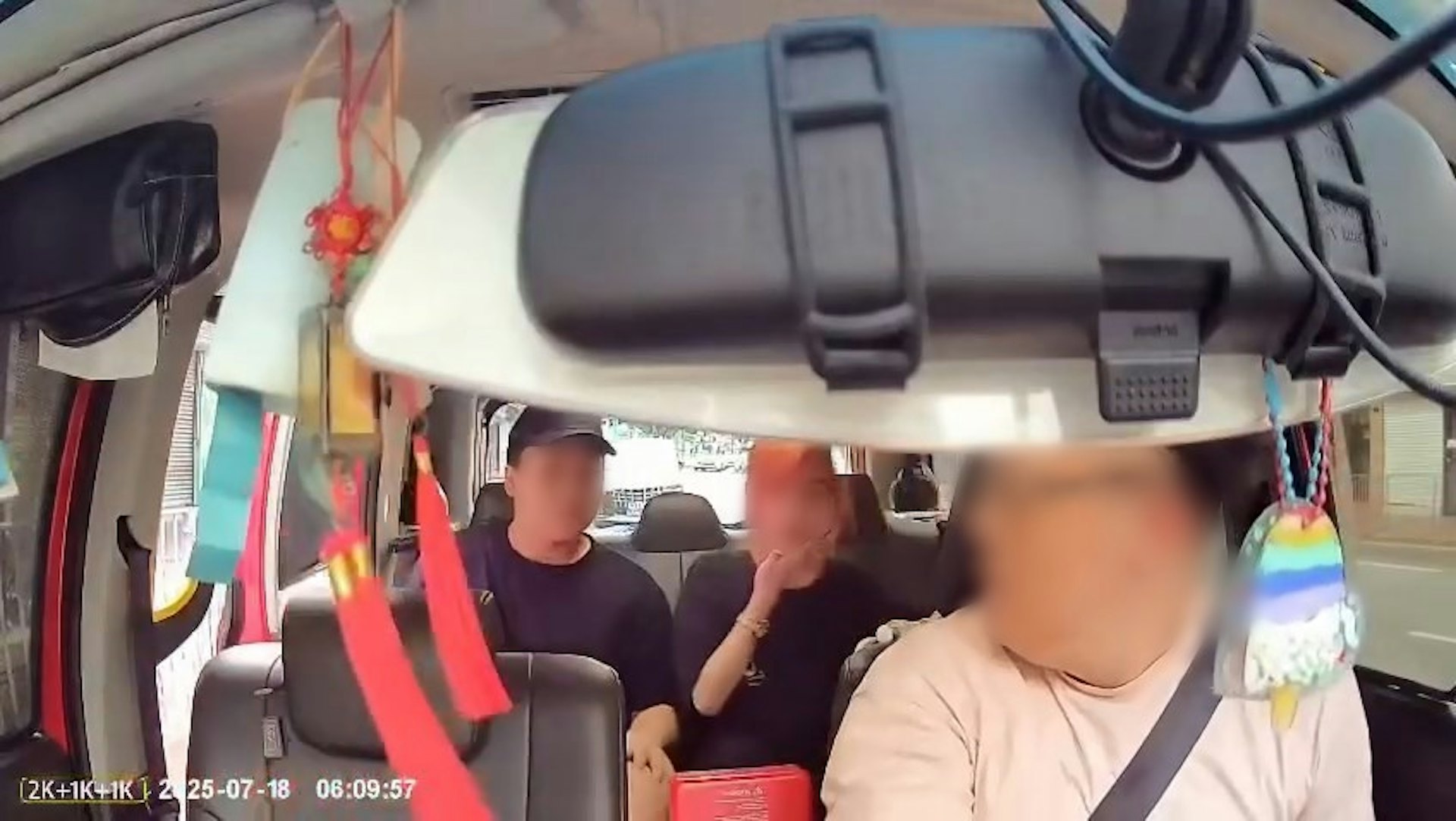 片段可見,後座有一名女乘客,當車門自動關上之際,一名戴鴨舌帽的男子登車。(馬路的事討論區 Bosca Chu 影片截圖)7 D& J w/ V& {7 \. n