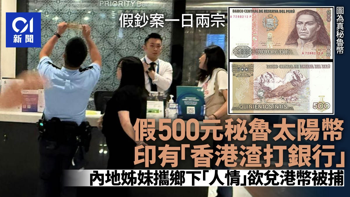 據悉,兩名被捕人為姊妹,74歲黃姊為內地人,持雙程證;62歲黃妹則持香港身份證。消息稱,黃姊因孫女於鄉下出嫁,同鄉向其送贈印有「香港渣打銀行」的面值500元秘魯太陽幣作「人情」。黃姊遂趁訪港,偕同妹妹到渣打銀行,由黃妹到櫃枱詢問職員可否將紙幣兌換為港幣,惟職員拿入辦公室檢查後,懷疑紙幣屬假鈔,隨即報案。2 N, ^ G% c3 a) e( ^, F