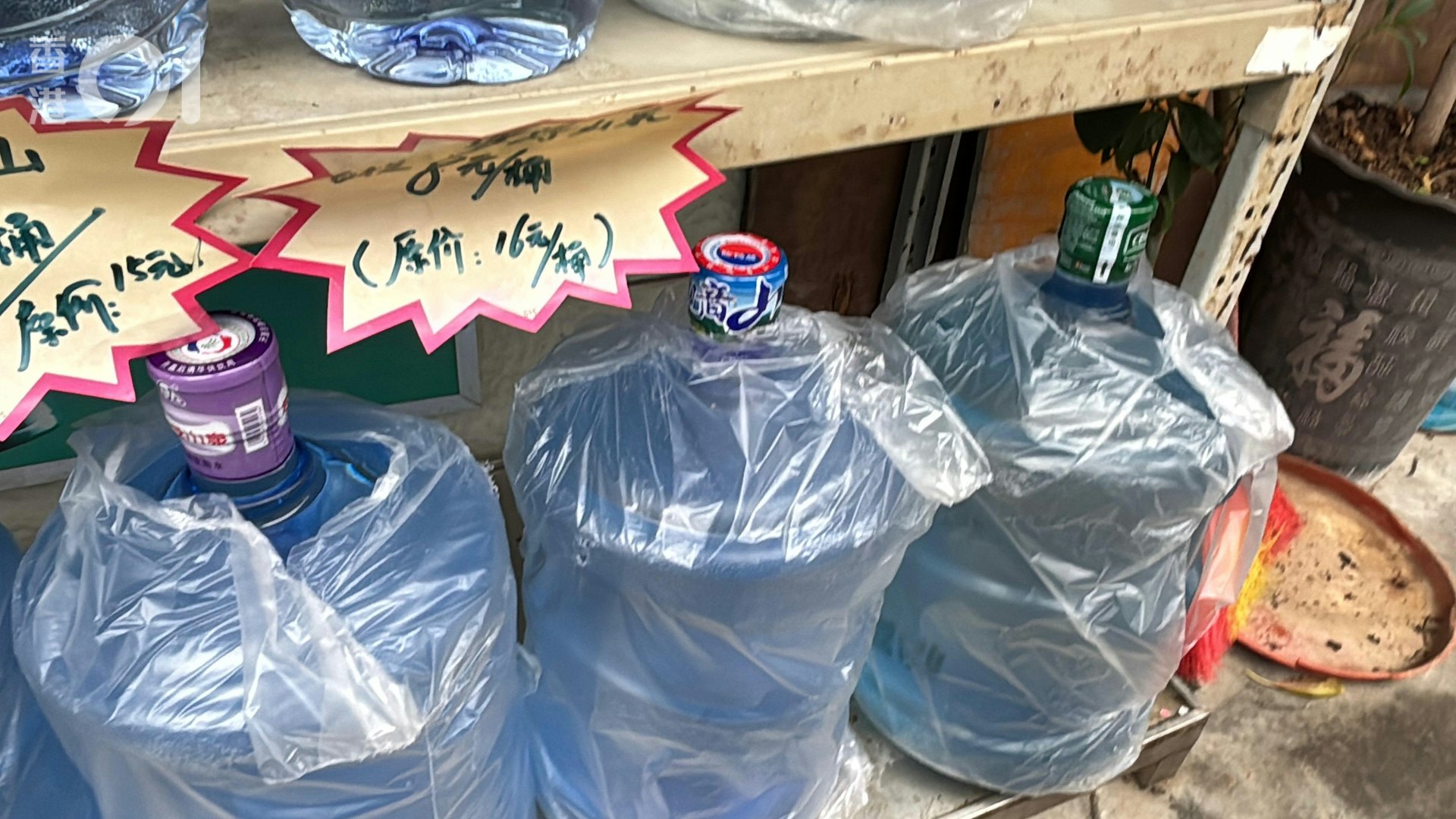 9 J6 H+ C/ `* u) }記者走訪多間批發店,僅找到一間有售觀音山桶裝水,原價15元人民幣,現減價至7元。(《香港01》記者攝) |