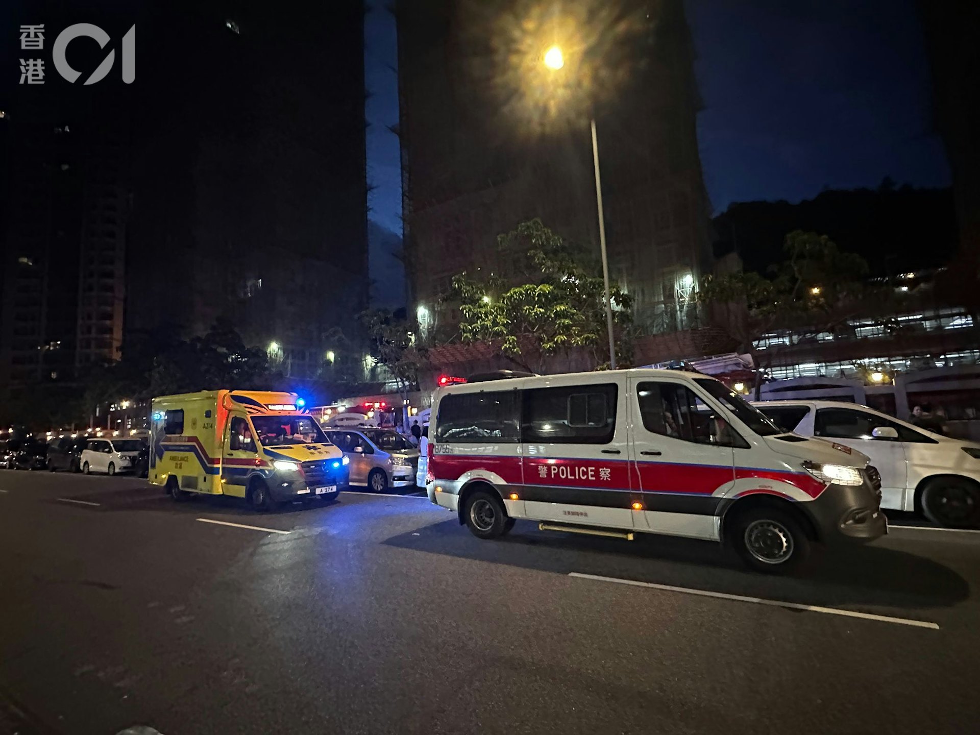 0 |9 G d, S. b! S; K墮樓男子的數名家屬,到達現場認屍。(香港01記者攝)