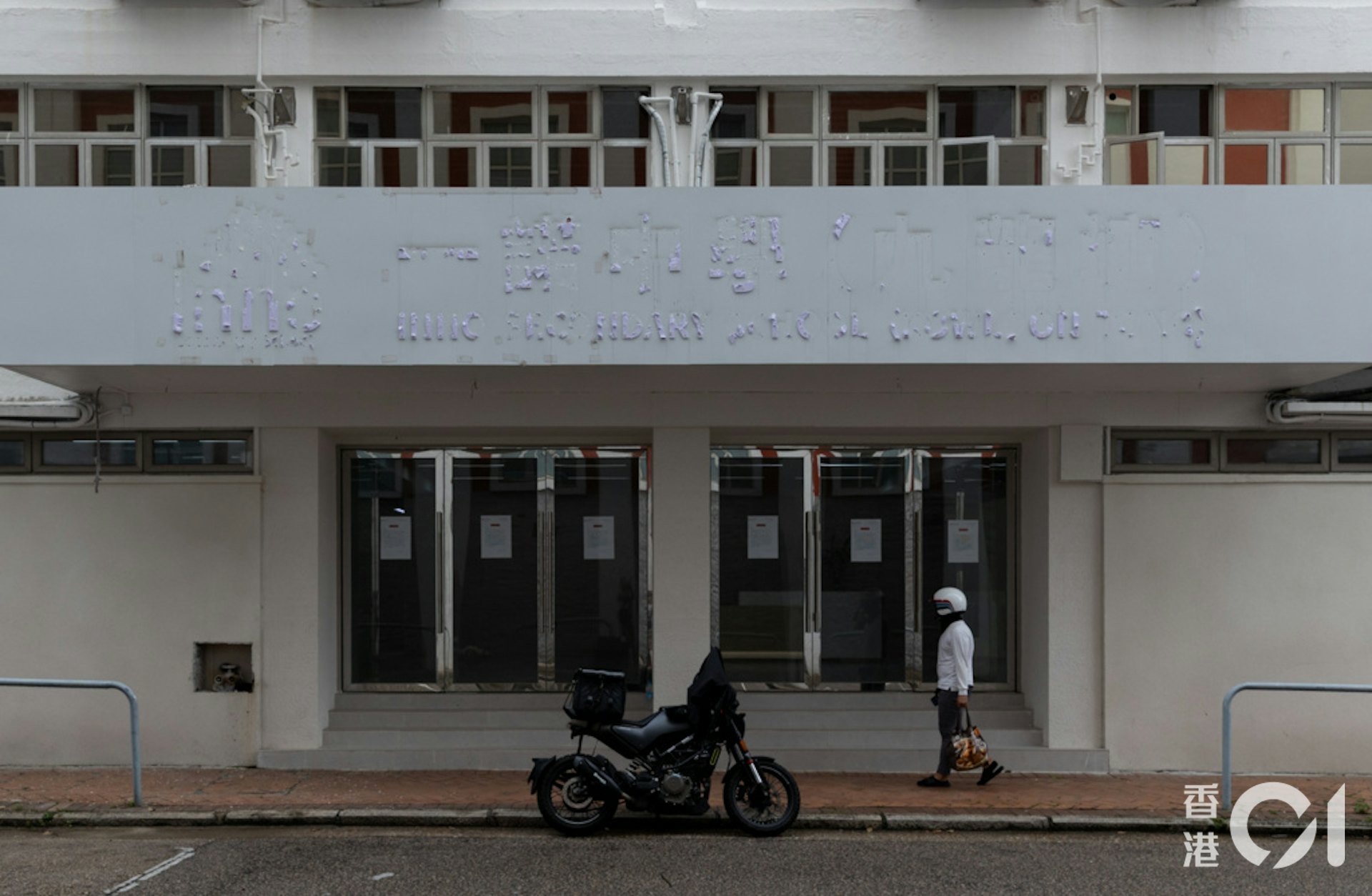 記者周三(9月3日)到一諾中學紅磡校舍視察,學校地下正門並無開放,所有櫥窗都有布廉遮擋,只見到窗邊陳列的教材。地下單位烏燈黑火,但有人在內整理物品,亦有工人運送桶裝水入內。