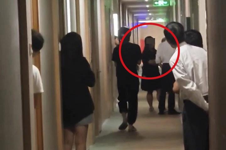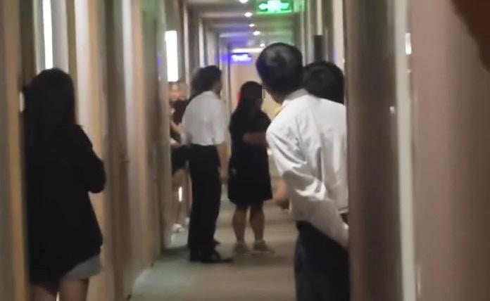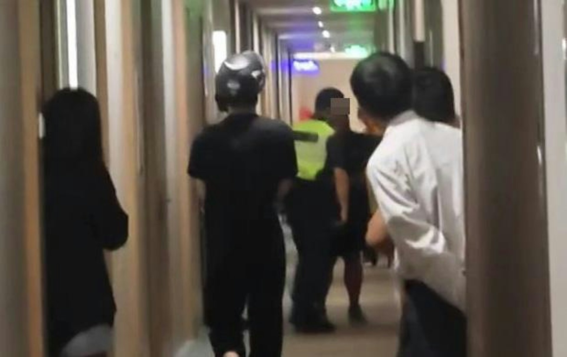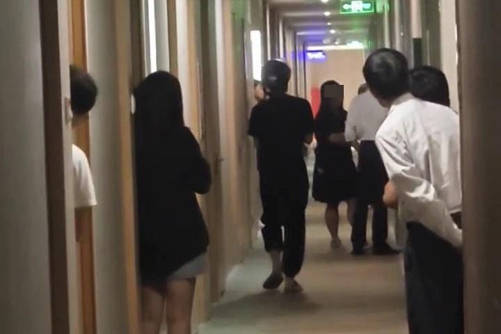 男子與妓女關上房門「避難」,其後有疑似公安到場查看情況,大婆則看到小三「真身」,隔着大門「叫陣」,直斥對方是妓女及以尖酸字眼形容其外貌,要求2人出來「對質」,怒問:「咁都可以要得落嘅?」