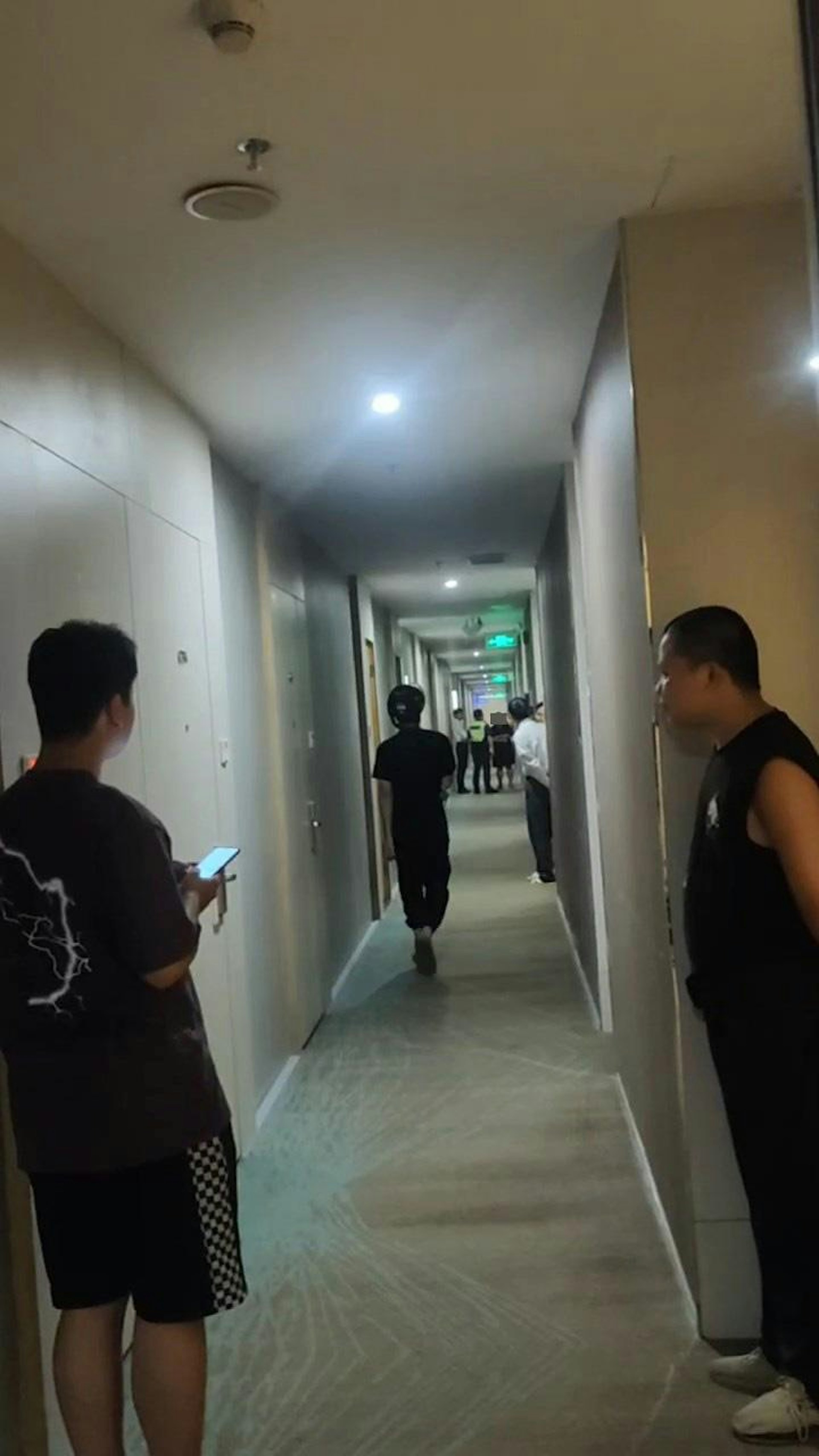 0 H: n1 a3 W: o* L* p現場為某酒店通道,聽到相信是大婆的女聲在大吵大鬧。(Telegram影片截圖)# C& C9 H3 a; \* R" \, p