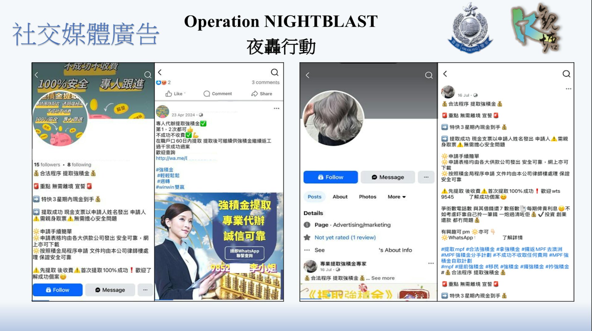 觀塘警區重案組第一隊督察梁曼宜指,調查顯示,有犯罪集團主腦假扮成中介,透過社交媒體上的廣告接觸被捕人,聲稱可以安排中介,幫被捕人提早取回強積金供款。實際上,有關中介會協助被捕人向強積金受託人公司,提交虛假的醫生證明,聲稱完全喪失行為能力或罹患末期疾病,目的為提早取回強積金供款。5 a3 Y4 _# ]- w+ a& } h' \6 M