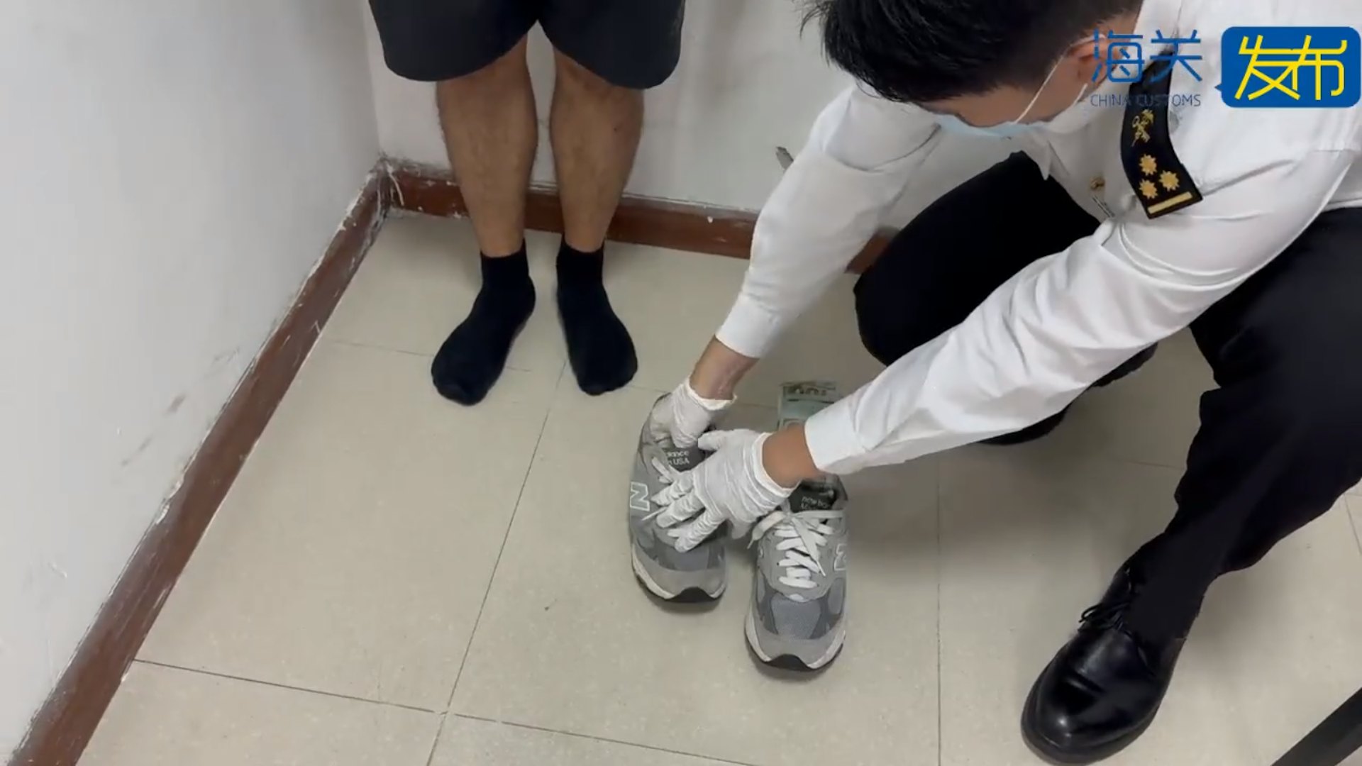 7 _2 I/ L' `: K0 i4 Q其左右腳鞋內檢獲美元現金26100元。(海關發布)% b; t% T, j/ P2 }+ _