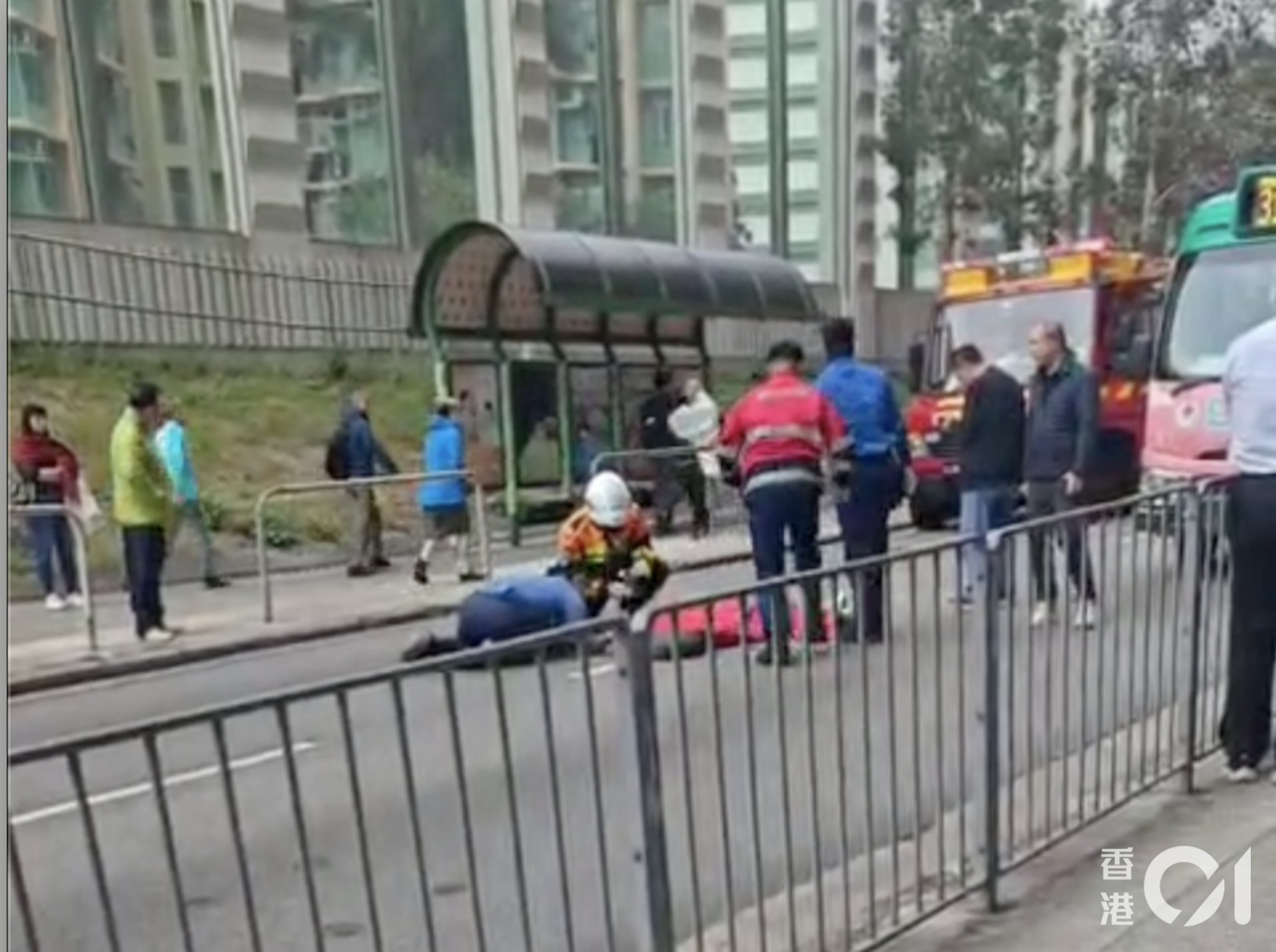 傷者倒卧地上,救護員到場急救。(讀者提供片段截圖)+ E; g; e0 P! S- C