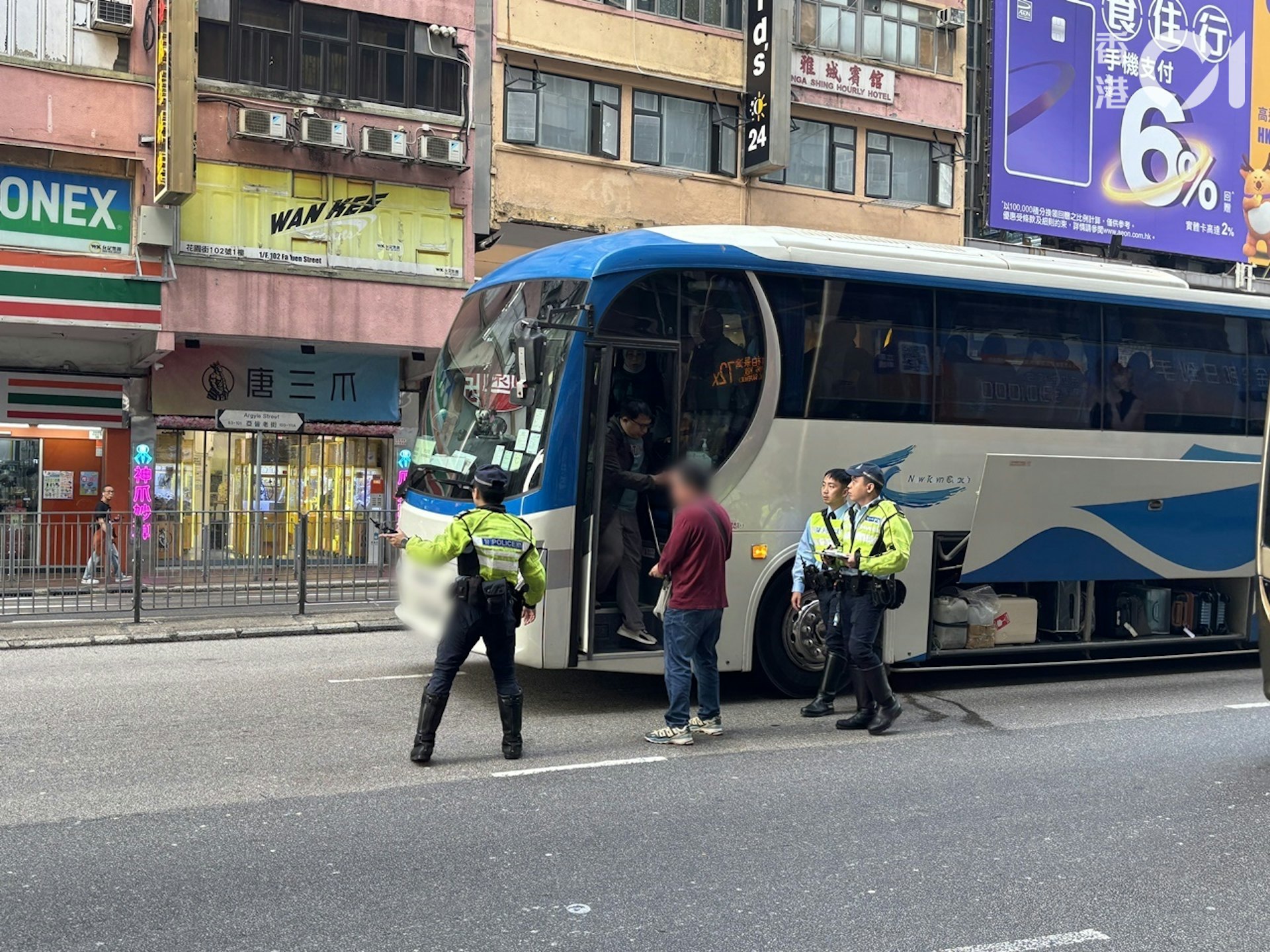 涉事旅遊巴男司機被捕扣查。(戴慧豐攝)