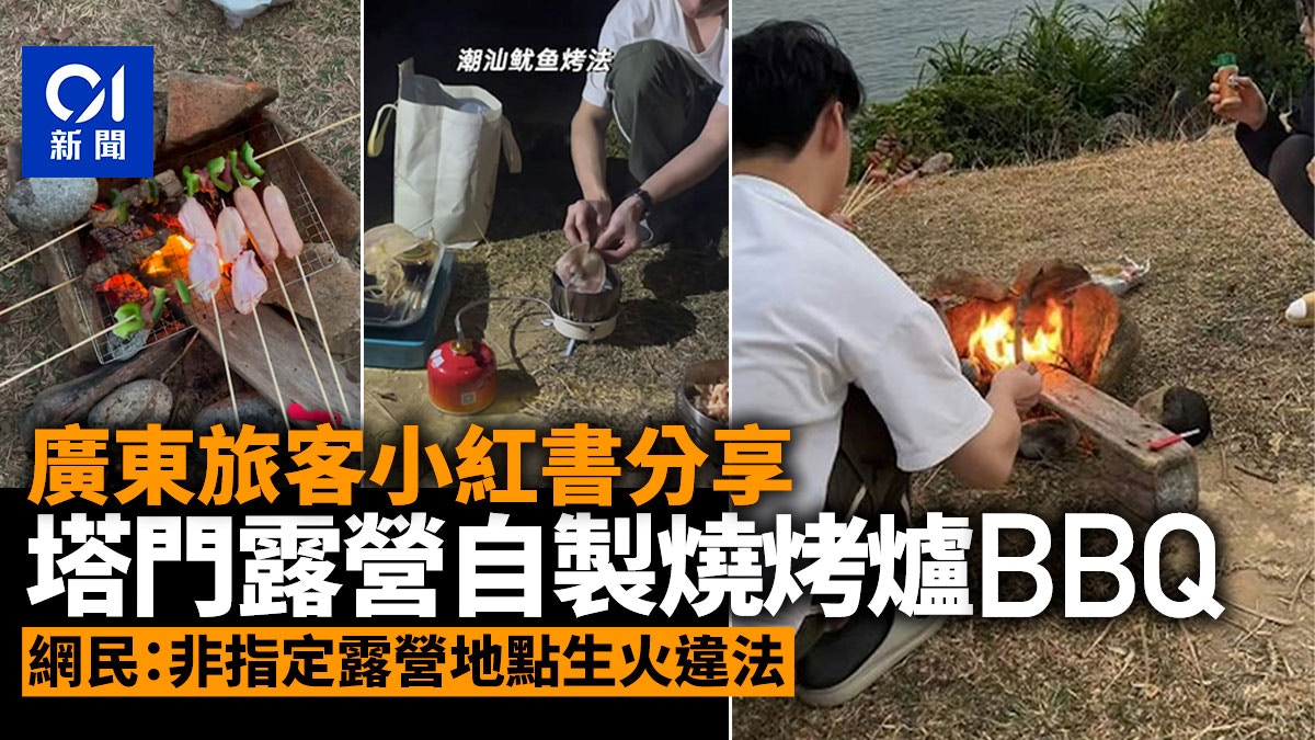 內地旅客近年愛到香港行山郊遊,露營也是選項之一。其中,塔門近年吸引不少內地旅客,近日便有廣東網民在小紅書發文,分享到塔門島露營,內容簡介了交通、登島後於草地搭營、島上風景,及展示自製燒烤爐BBQ、帶備小型燃氣罐炮製「潮汕烤魷魚」等。有留言網民指出,在香港非指定露營地進行燒烤屬違法,違反《郊野公園及特別地區規例》等法例。+ d4 x8 c& c+ i