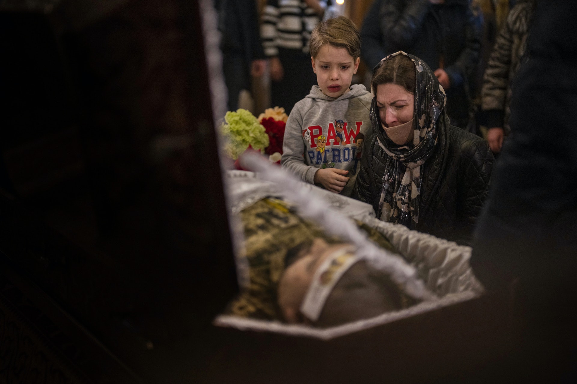 # Z. O0 j# g! k5 f" b2 I# D4 q% }tvb now,tvbnow,bttvb烏克蘭:圖為2022年2月22日,一名烏克蘭軍人在東部地區的戰事中犧牲,他的家人在首都基輔為他舉辦喪禮。(AP)