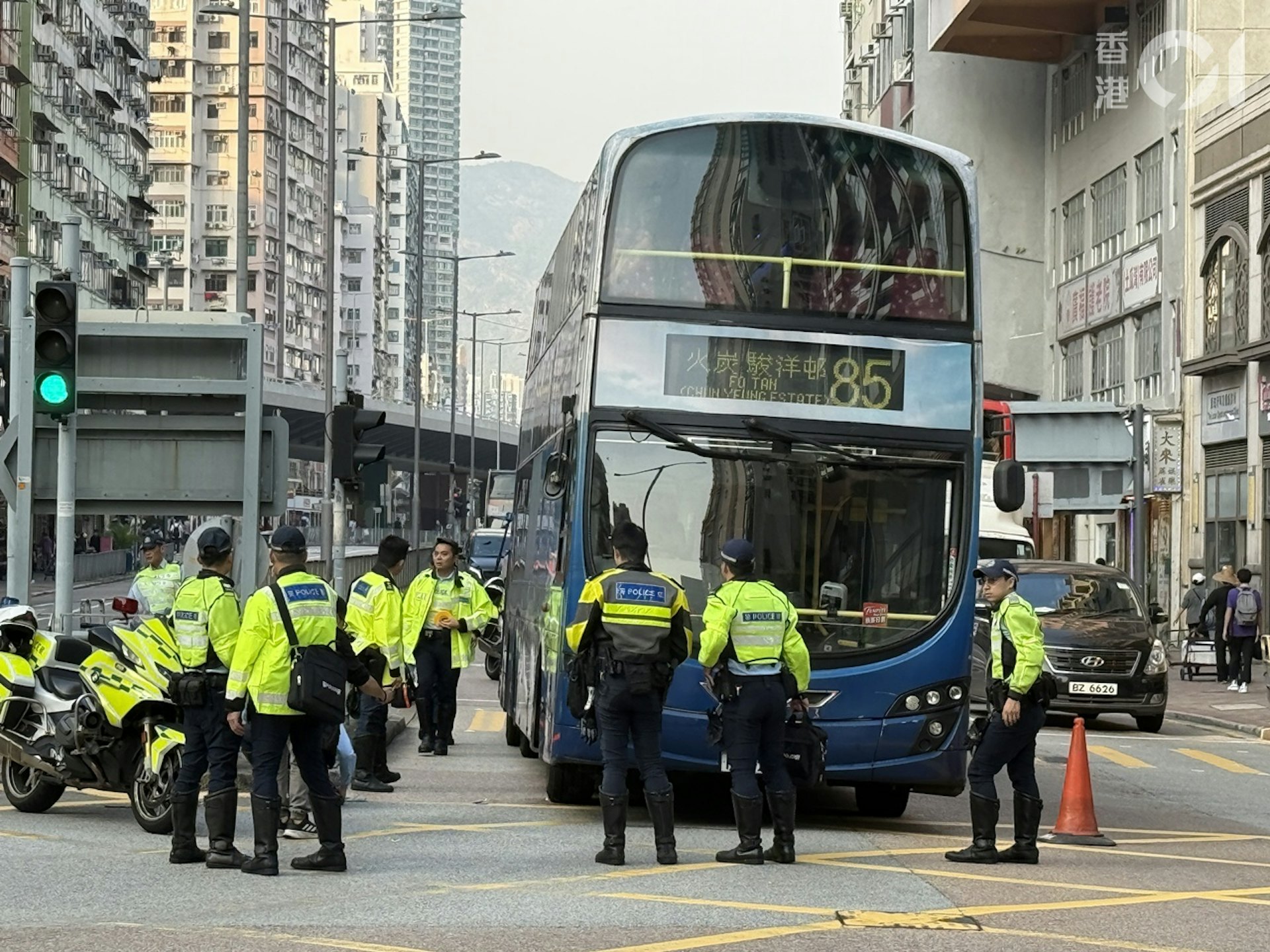 事後現場遺有血漬;巴士車底則有一副眼鏡。消息指,當時女事主與一名長者同行,巴士沿馬頭圍道順行車綠燈駛至時,事主步出馬路被撞到。警方不排除有人在「紅公仔」時過路釀成意外。巴士68歲姓杜女車場在現場協助警員調查。