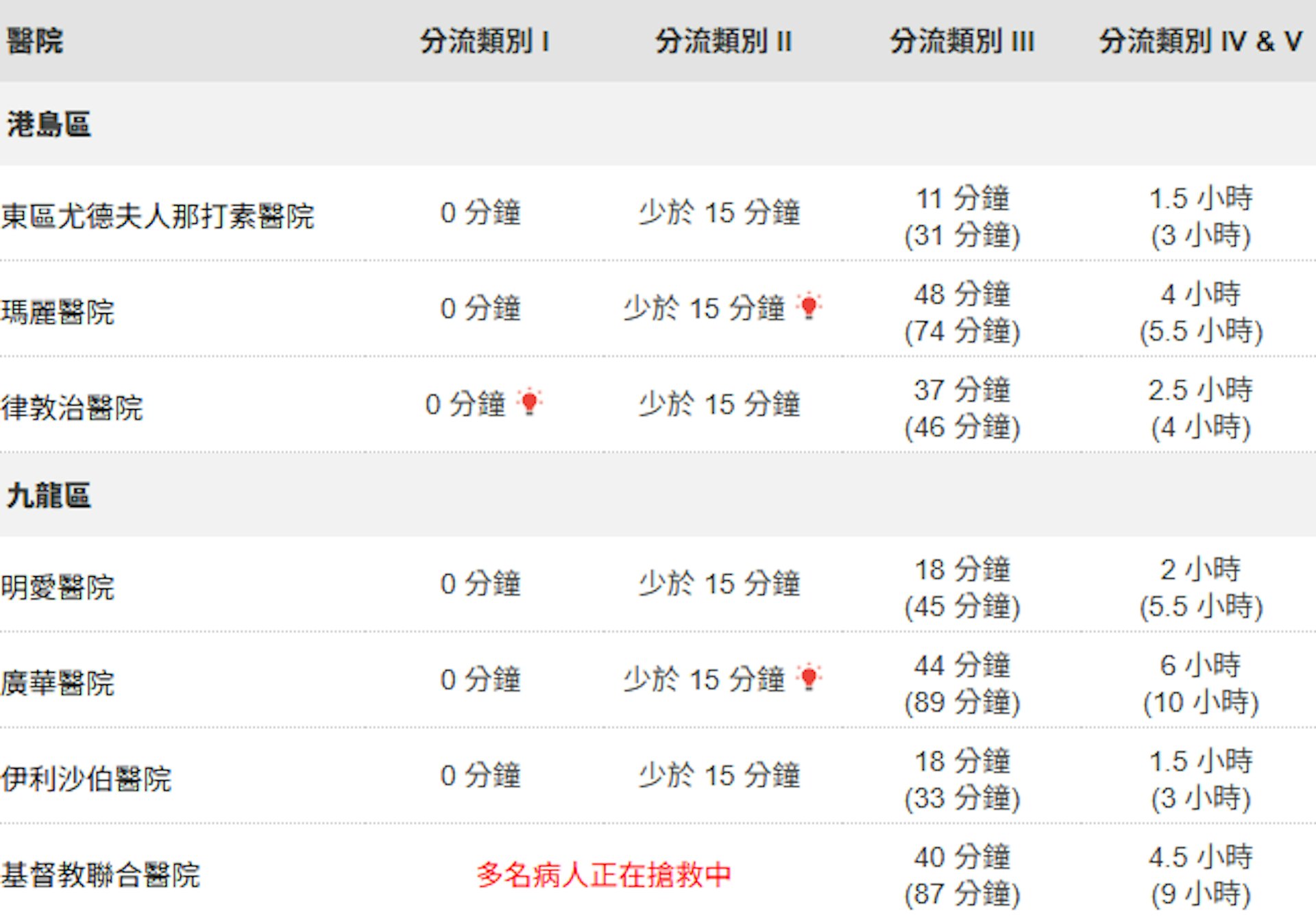醫管局網頁顯示,晚上9時15分,聯合醫院、瑪嘉烈醫院急症室的次緊急及非緊急病人,最長輪候時間要9小時,廣華醫院要10小時,輪候時間最長的威爾斯親王醫院更要10.5小時。