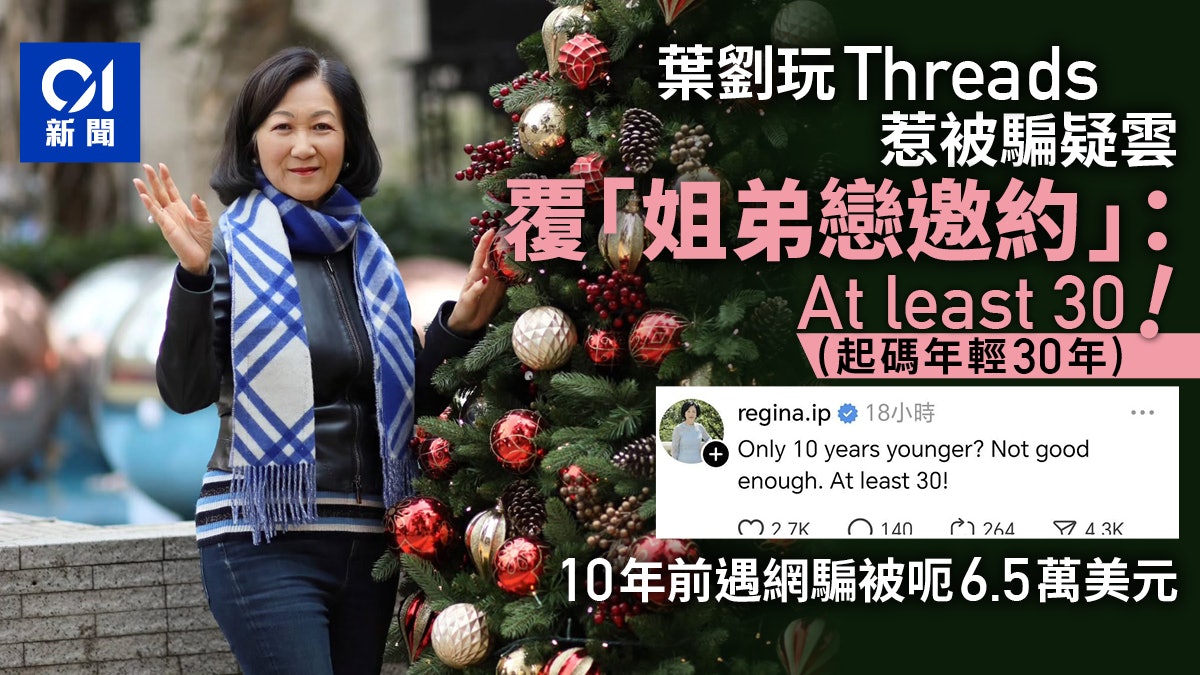 元旦起卸任立法會議員的新民黨主席葉劉淑儀,上月加入受年輕人熱愛的社交平台Threads,雖然迄今未有主動發文,不過一篇關於「姊弟戀」的貼文回應引起網民注意。事源日前有人在Threads詢問女網友「會否與年輕十年的男人約會」,葉劉留言回應指對象年輕10年並不足夠,「起碼要30」。有網民「起底」提醒葉劉,「姊弟戀」帖文的「樓主」可能屬詐騙帳號,又翻出葉劉10前曾被黑客騙走50萬元的舊帳,呼籲她小心提防。《香港01》正向葉劉淑儀查詢。