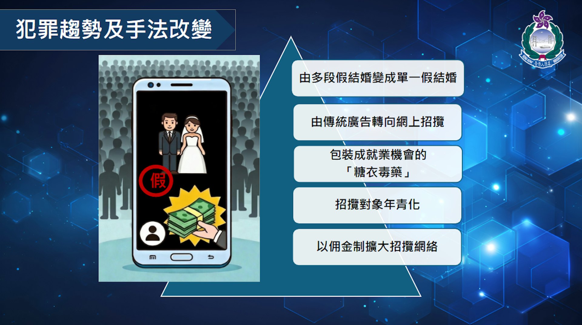 7 `# E# d- v3 Y$ ~9 p% `% F$ q% ~os.tvboxnow.com假結婚犯罪趨勢及手法改變。(入境處提供)