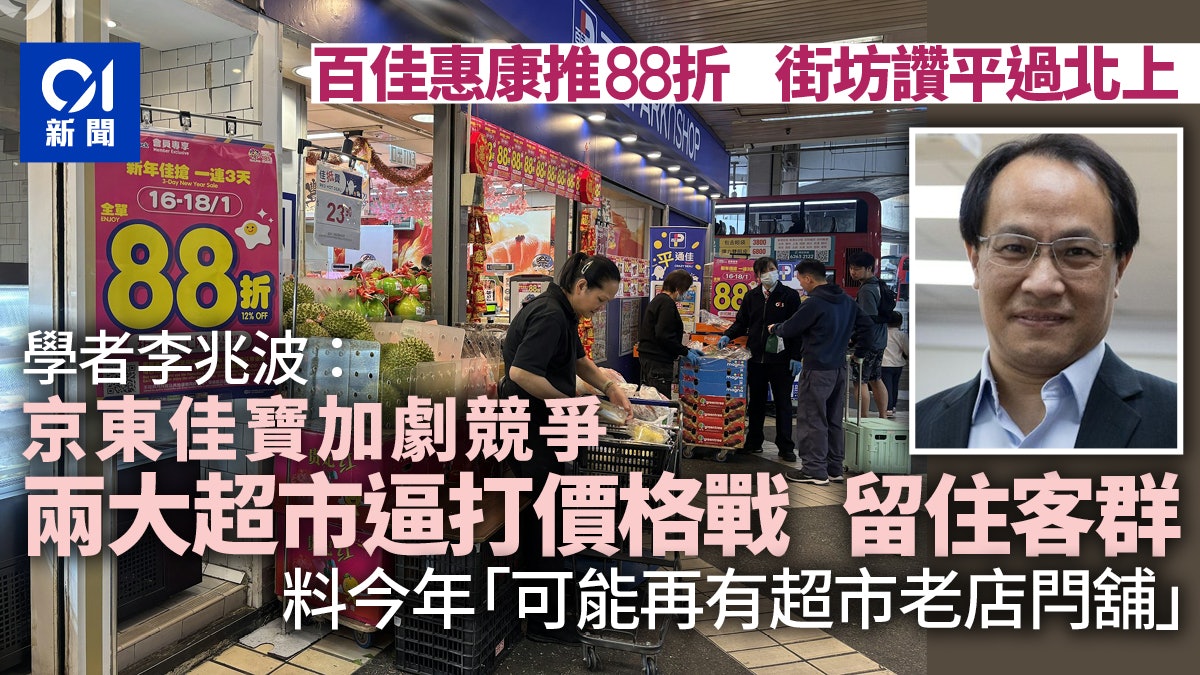 踏入2026年,本港超市掀起新一輪價格戰,佳寶超市自去年被京東收購後,採取進取攻勢,已先後推出三次全線八折優惠,合計推出8日。反觀百佳及惠康只透過App發放優惠券,以及定期與信用卡合作推出92折優惠,雙方折扣時間也不重疊。