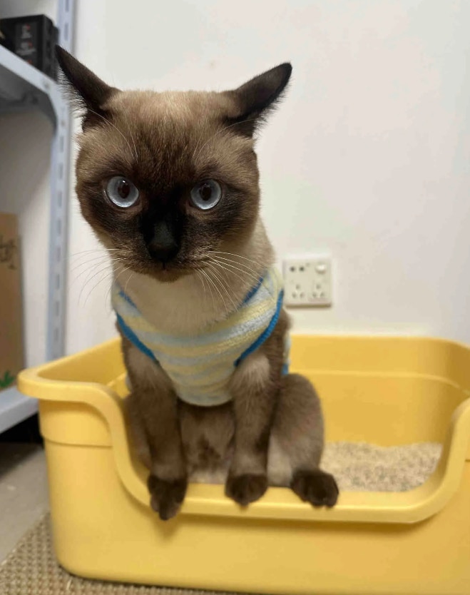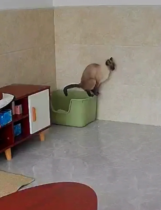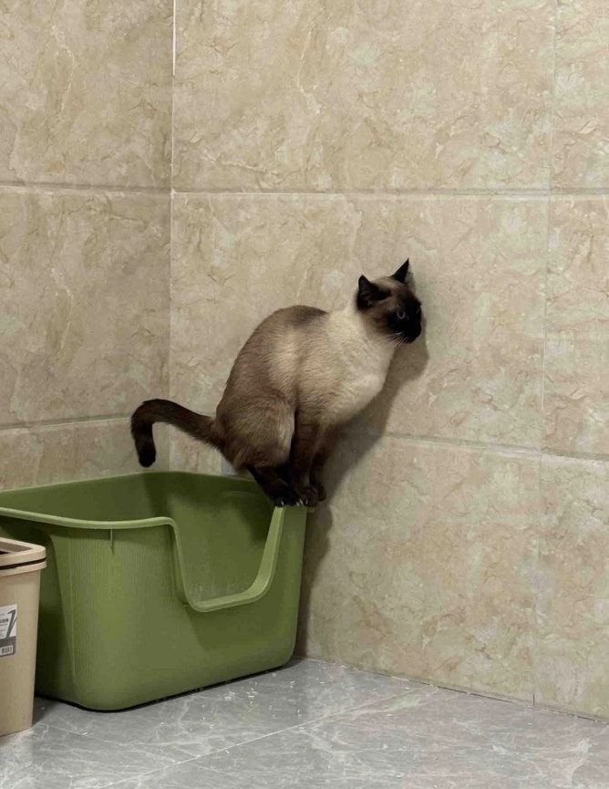 一位鏟屎官@狗咪日記說家裏的暹羅貓特別倔強,簡直就是超級無敵倔驢。倔的點主要體現在貓上廁所的時候,別人家貓上廁所都會踩在貓砂盆裏,而這隻暹羅貓上廁所偏要踩在貓砂盆邊緣。