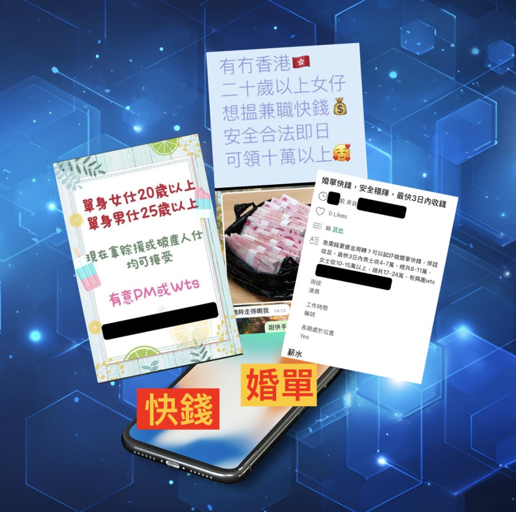 對方稱會安排未婚港人參與真正的假結婚,已婚女性則被安排參與騙局「呃大陸人」。