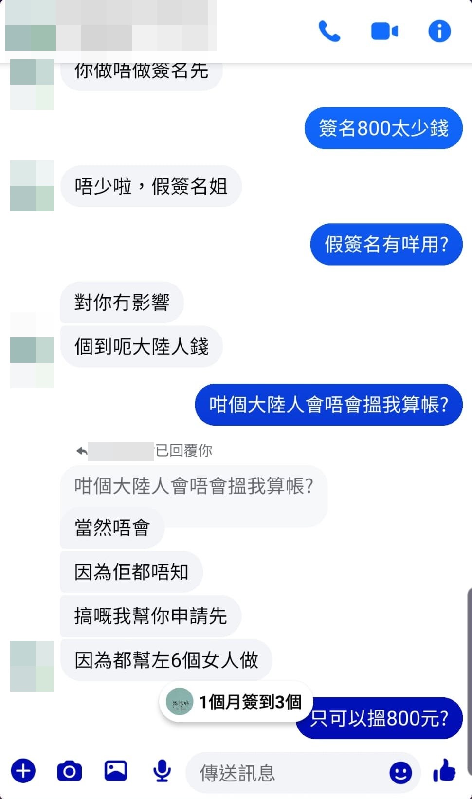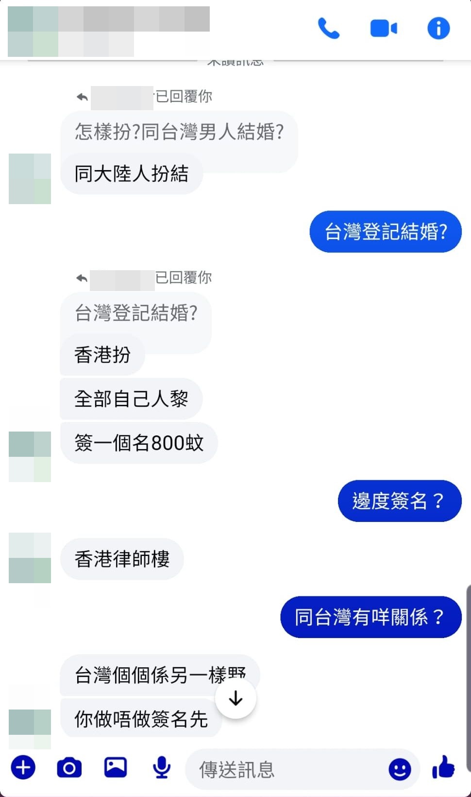 記者在Facebook介紹工作群組發現一則「搵快錢」帖文,內容指招聘兼職前往台灣工作,日薪數千元,條件是已結婚的女士,懷疑是不法工作,於是點擊WhatsApp連結,以已婚女性身份發訊息查詢,對方指是簽名「扮假結婚」,「配偶」是內地男子,簽名地點為「香港律師樓」,台灣兼職則是另一類工作,與假結婚無關。tvb now,tvbnow,bttvb$ ~4 ~) o1 S! P( j5 D, f) l