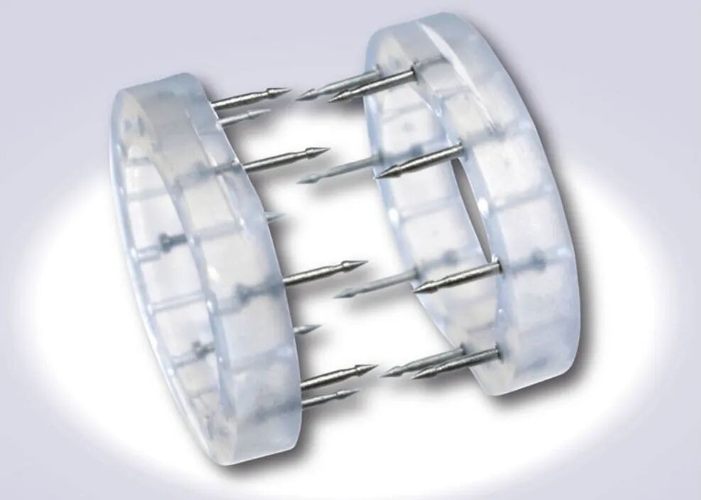 據報道,該微血管吻合裝置是一款由中國醫療公司代理的進口醫療器械。產品由兩個超高分子量聚乙烯圓形環組成,上面帶有不鏽鋼針。吻合血管時,將斷開的血管勾在帶有不鏽鋼針的圓環上,使用鉗夾將圓環閉合,可縮短手術時間,利於術後恢復。: |& s# n. P( T1 R* o5 v# F3 P