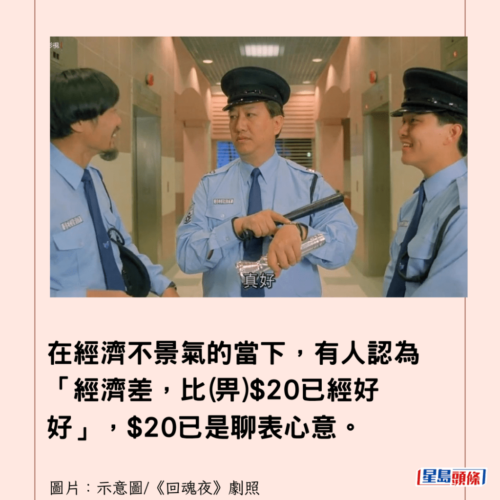 在經濟不景氣的當下,有人認為「經濟差,比(畀)$20已經好好」,$20已是聊表心意。