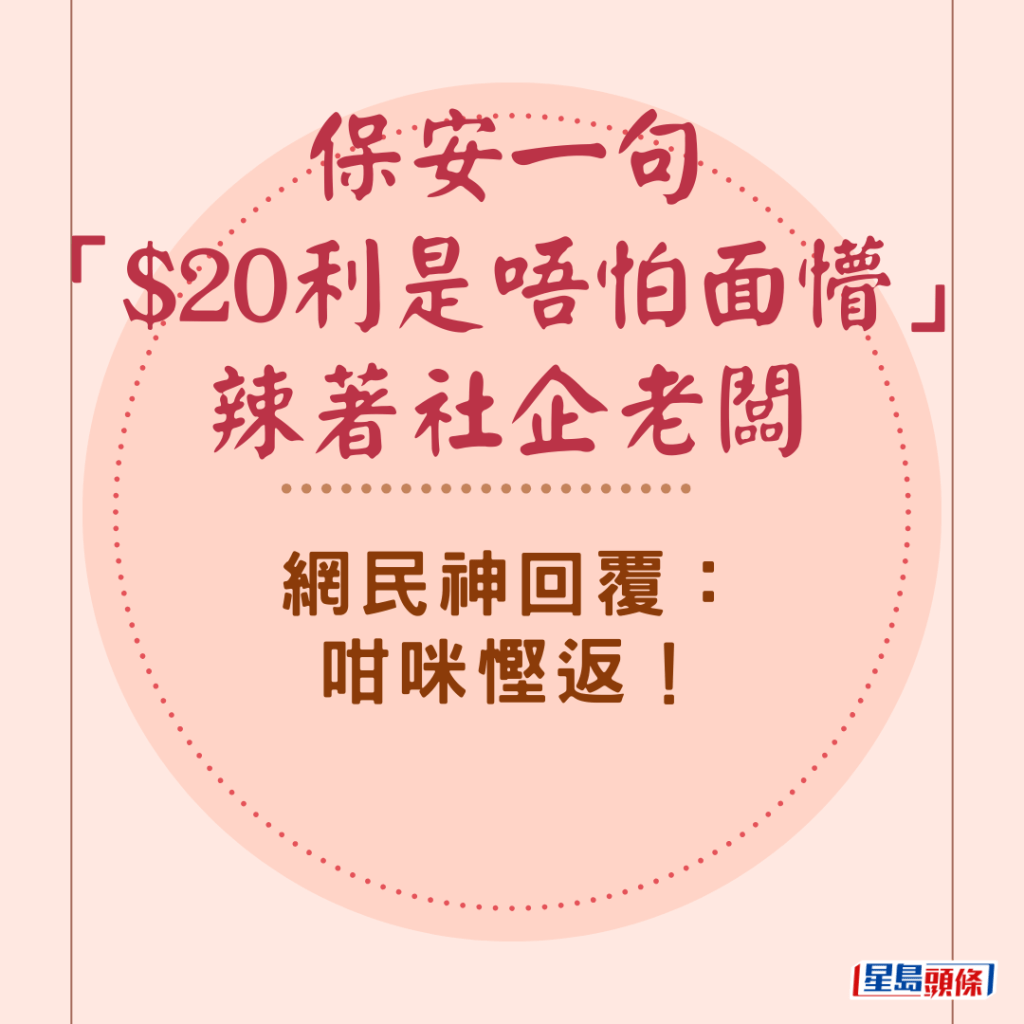 保安一句「$20利是唔怕面懵」辣著社企老闆 網民神回覆:咁咪慳返!↓↓↓↓TVBNOW 含有熱門話題,最新最快電視,軟體,遊戲,電影,動漫及日常生活及興趣交流等資訊。6 C4 N. f0 q' u$ V. c9 {* M