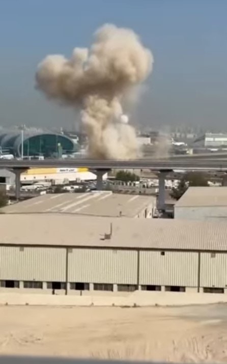 % s% K% W" y9 i$ F, f影片顯示杜拜國際機場一帶遭襲冒起濃煙(影片截圖)