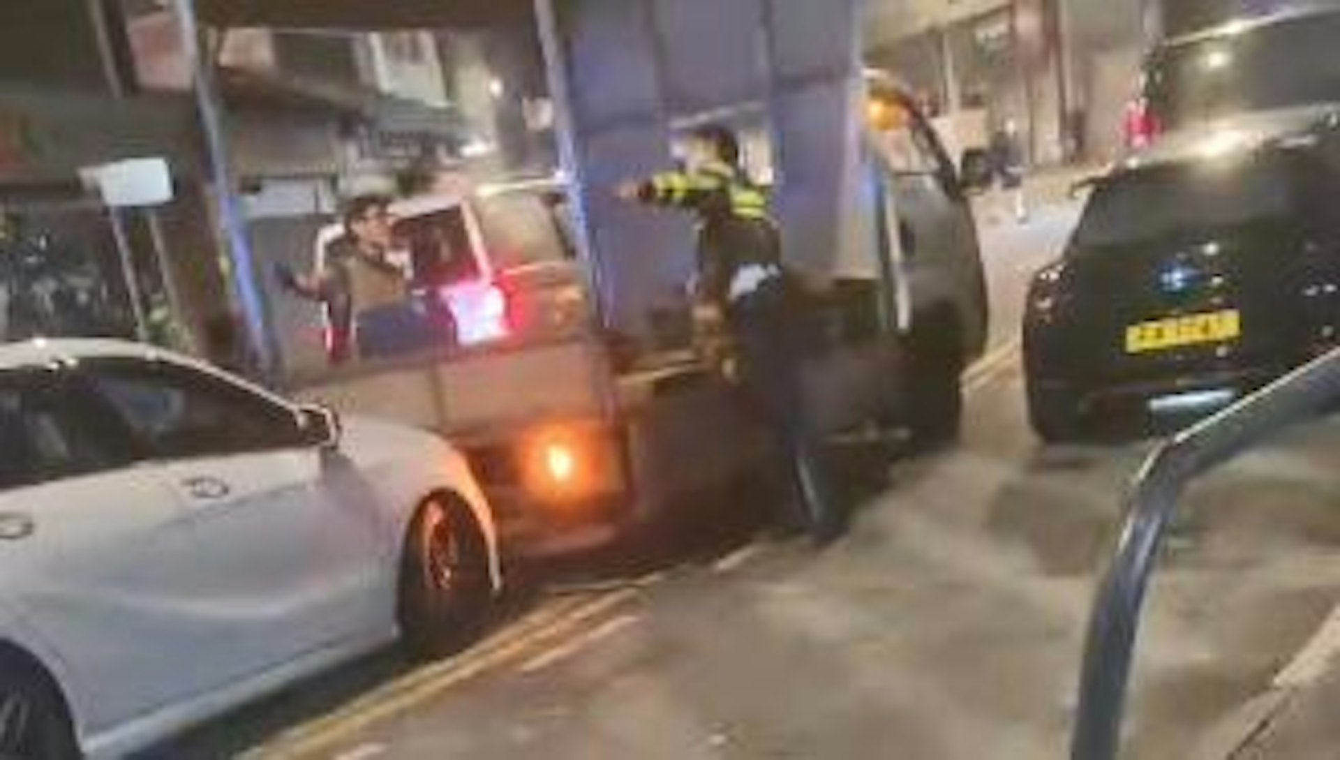; v0 }3 c b. K/ g3 l元朗今日(14日)清晨發生涉及毒品的車禍,一輛平治私家車撞傷兩名途人及撞貨車後,司機棄車不顧,並將一大袋依托咪酯丟入垃圾桶後逃去無蹤,警方現正展開追緝。《香港01》獲讀者提供片段,可見兩名途人被撞後,其中一人狀甚痛苦,另一人倒地不起,而救護員接報到場後即場為他們急救。