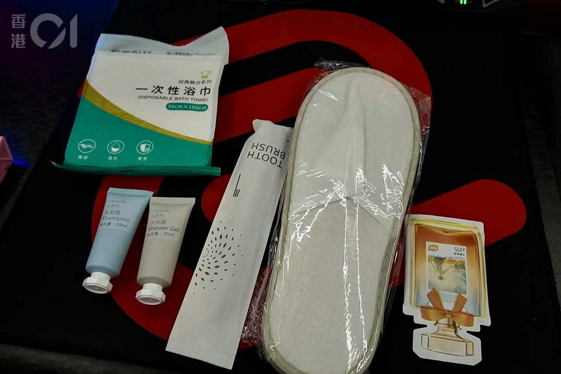 3 n. Z2 E" u% _. Qtvb now,tvbnow,bttvb淋浴包包括一次性拖鞋、浴巾、牙膏及牙刷,沖涼用品則有旅行裝洗髮露及沐浴露,還有一包洗衣液。(王海圖攝)公仔箱論壇. n' Q8 }$ P! j& ?- ^2 U1 h" I' T