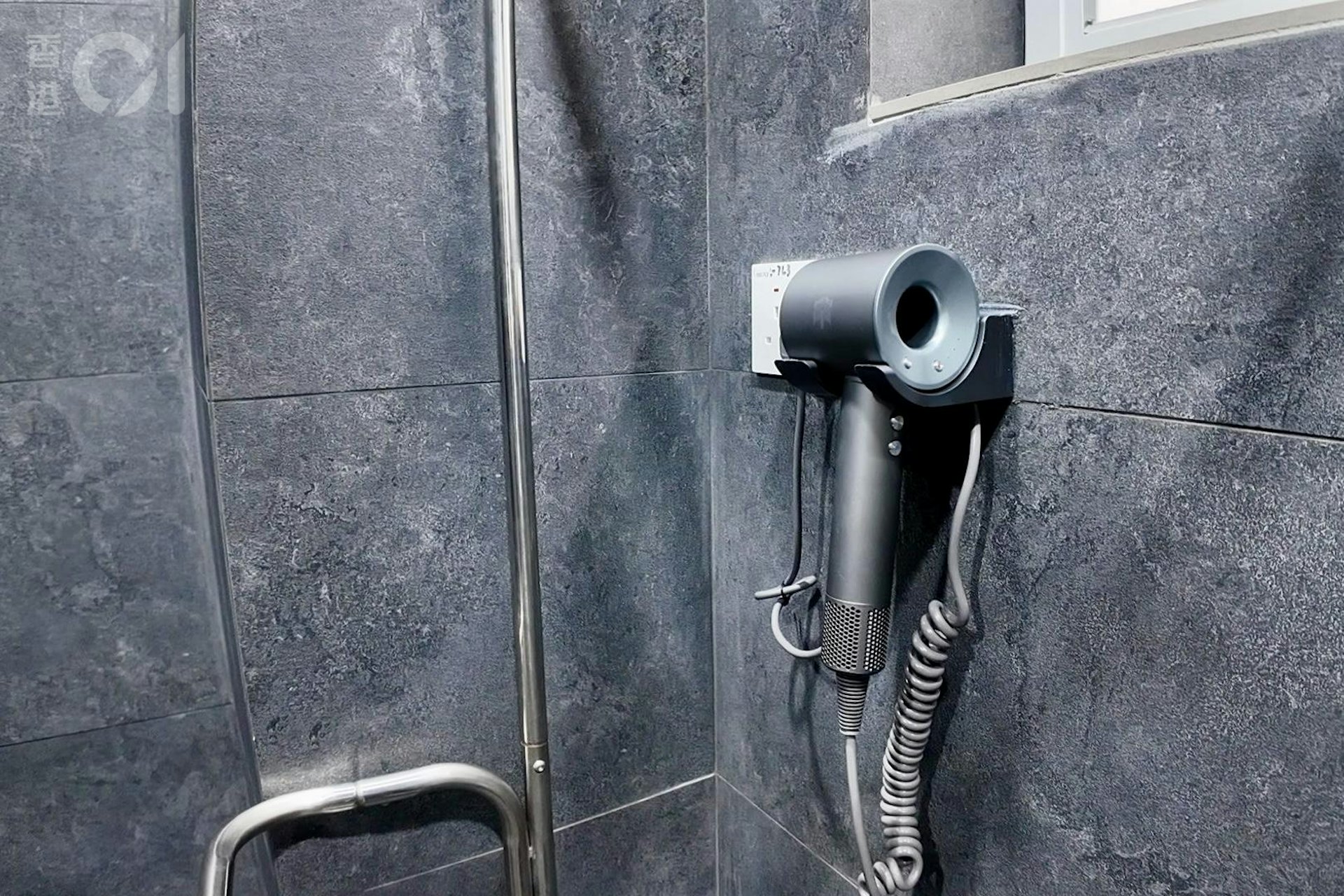 8 t( _: c' i1 _ S& P+ A3 ?/ J0 b淋浴間有吹風機掛在牆上,不額外收費。(王海圖攝)9 \8 r3 w6 x* D7 ?7 K: V+ D