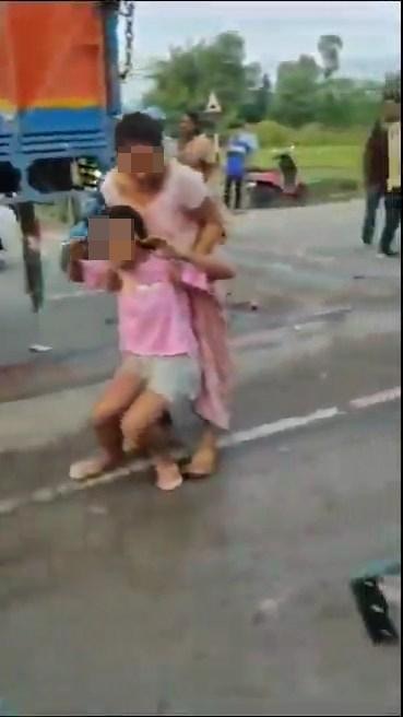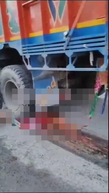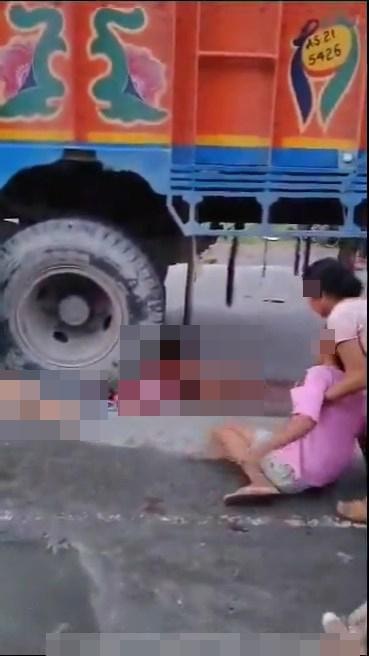 極恐怖!網絡近日瘋傳影片,指印度阿薩姆邦(Assam)發生駭人聽聞奪命交通意外,1名女子駕駛電單車時疑與1輛大型貨車碰撞,女子被捲入車底,慘遭車輪「輾碎」,當場死亡。相信是其女兒的年幼女孩目擊崩潰崩潰痛哭,要由其他人拉離現場,畫面令人心酸。