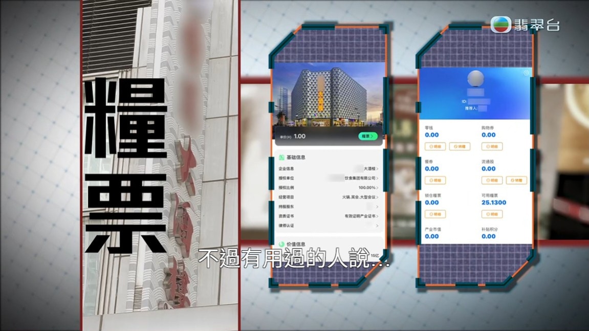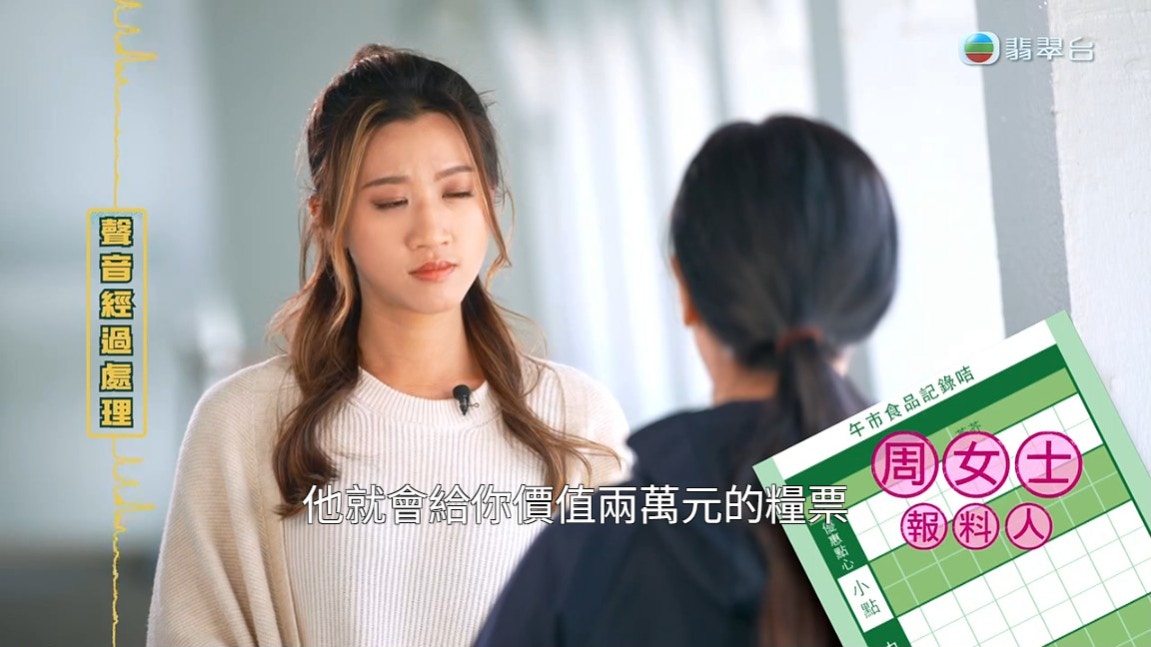 周女士最後付一萬元給酒樓,相對有兩萬元價值的糧票就可以在酒樓內消費。(節目截圖)tvb now,tvbnow,bttvb3 _; B" ^) V0 J/ E