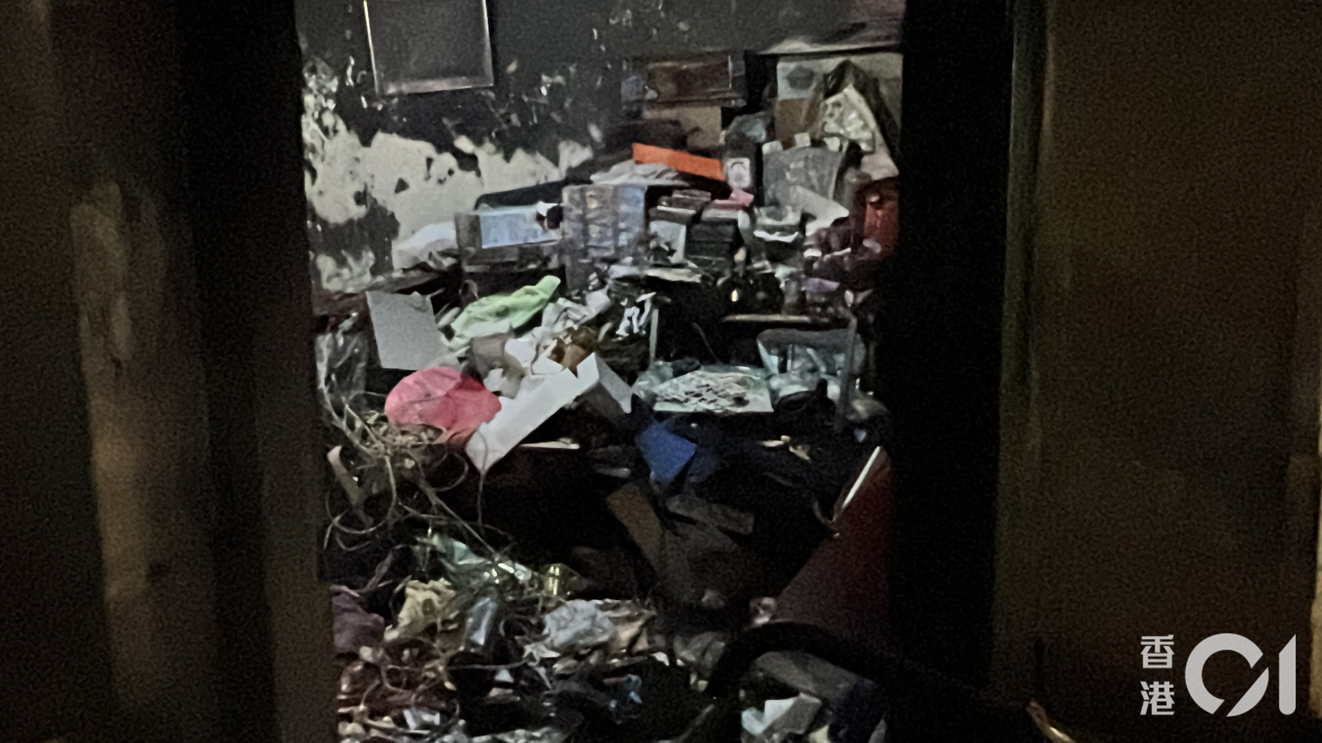7 v4 J, q2 A& f9 `% }( b7 z樂富邨樂東樓3樓走廊仍隱約帶有火警後的燒焦味,死者李婦的住所已解封,整個單位嚴重熏黑,燒得熔熔爛爛,堆滿雜物,據街坊表示,李婦與兒子同住上址,對她最終搶救無效深表難過。毗連李婦住所的鄰居,門口則擺放一枝白蠟燭,據聞屋內一名老人家最近離世。