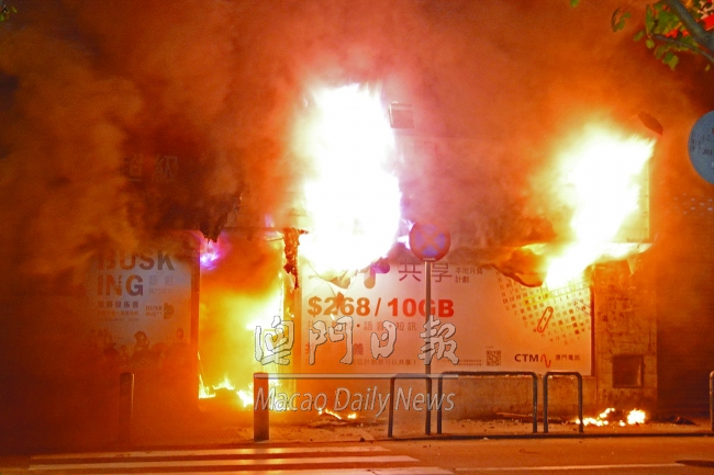 z" S7 V I6 W# [: w! y4 ~os.tvboxnow.com 宏基超市起火後火勢猛烈,火焰衝出門外,波及招牌、貨品飾櫃。據副一等消防區長黑沙環行動站主任郭斌表示,消防局凌晨一時四十八分接獲報案,出動八輛救援車輛及卅三名消防員,啟動兩條消防喉灌救,於十八分鐘內成功將火救熄。火警現場物品多,火勢蔓延迅速,消防員仍然在短時間內撲滅火勢,過程順利。