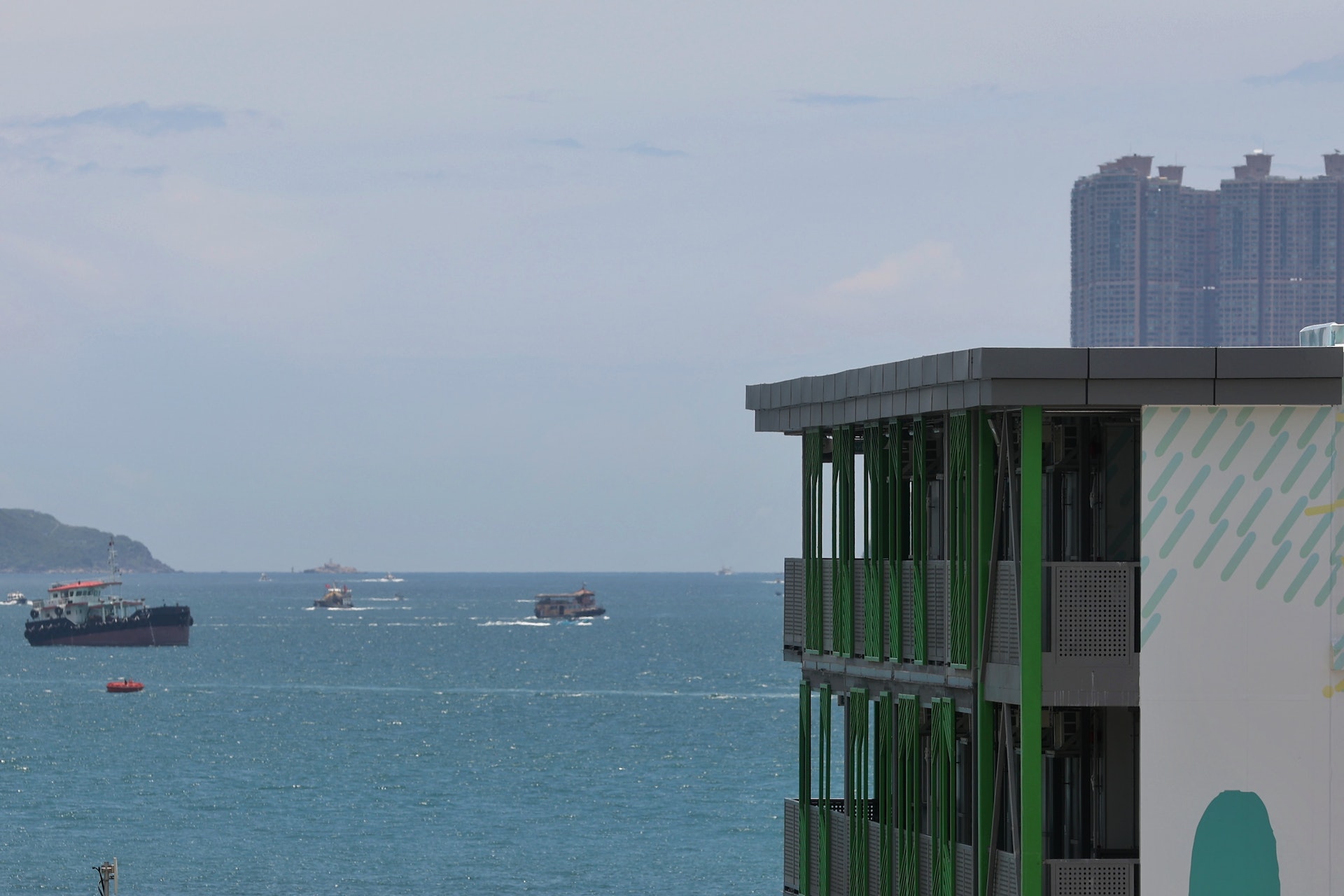啟德方艙醫院位處海旁,可一覽觀塘避風塘。(李澤彤攝)