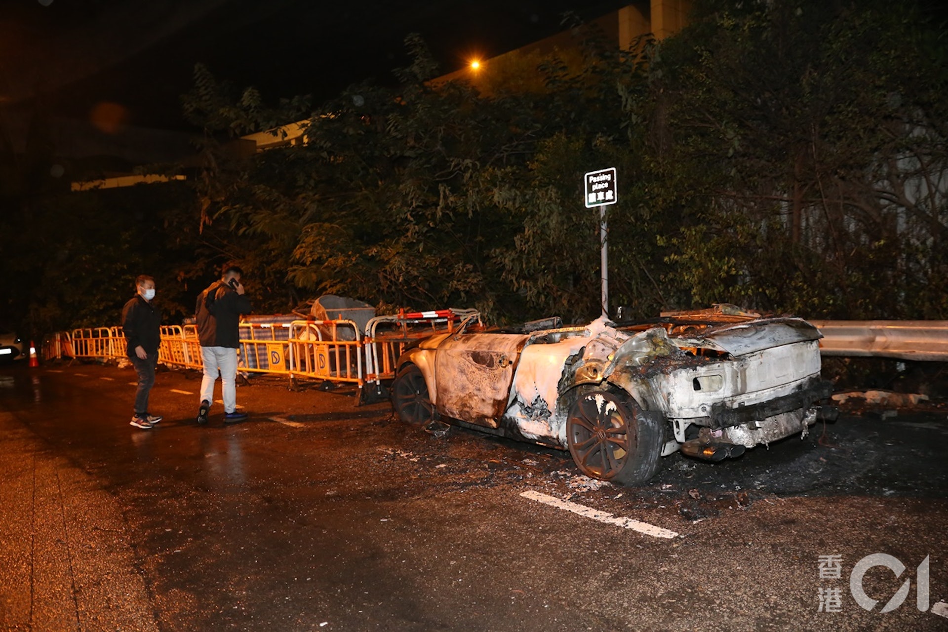 3 p3 h$ ^" W9 a6 I) s2 H* e公仔箱論壇起火私家車燒成廢鐵。(陳永武攝) |