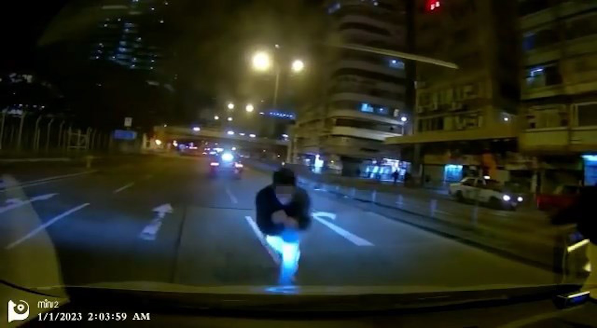 網上瘋傳一段在2023年元旦(1日)凌晨2時04分拍攝的車Cam片,當時車主駛到旺角亞皆老街近洗衣街交界時,突然有名男子跳向車頭,裝作是被車撞倒,嚇倒車內眾人。車主在恐慌中未反應過來之際,該男人竟然開始自轉滾地,令人哭笑不得,他不斷向左轉轉足分半鐘,轉了68個圈後在車頭前方休息一下,17秒後又再次轉,今次則向右轉。期間對面線有救護車經過,見狀隨即繞路到事發現場,救護員問車主:「你哋頭先有冇撞到佢㗎?」,車主回應:「梗係無撞佢啦!」救護員便上前向涉事男子查詢狀況,該男子便站起來自行離開,車主亦駛車離去。
