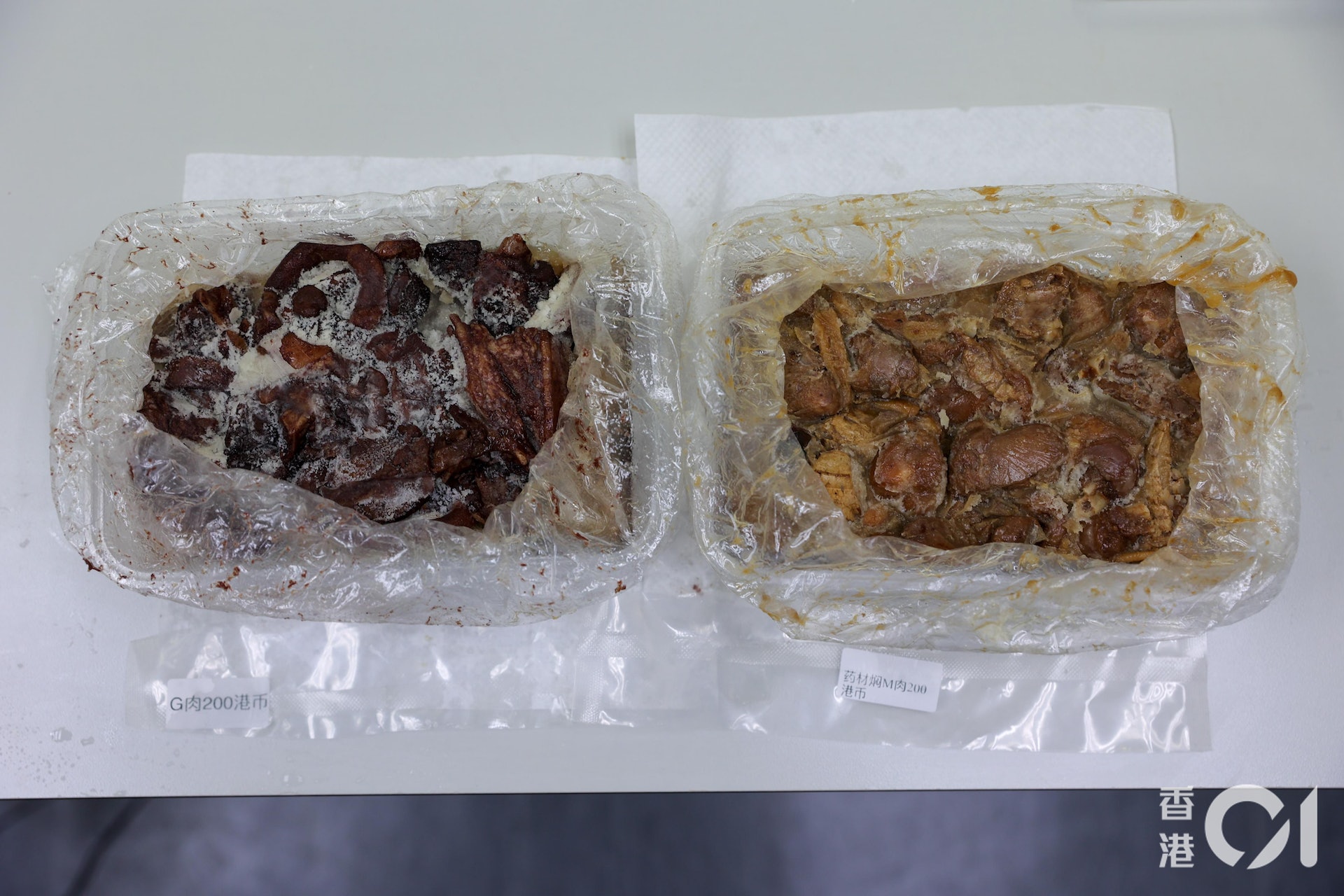 ( e) R- r: b1 ~ b公仔箱論壇《香港01》委託海康生命科技檢驗購入的「G肉」及「M肉」。(夏家朗攝)公仔箱論壇. G$ P! ~# J' d/ O6 p, t# X