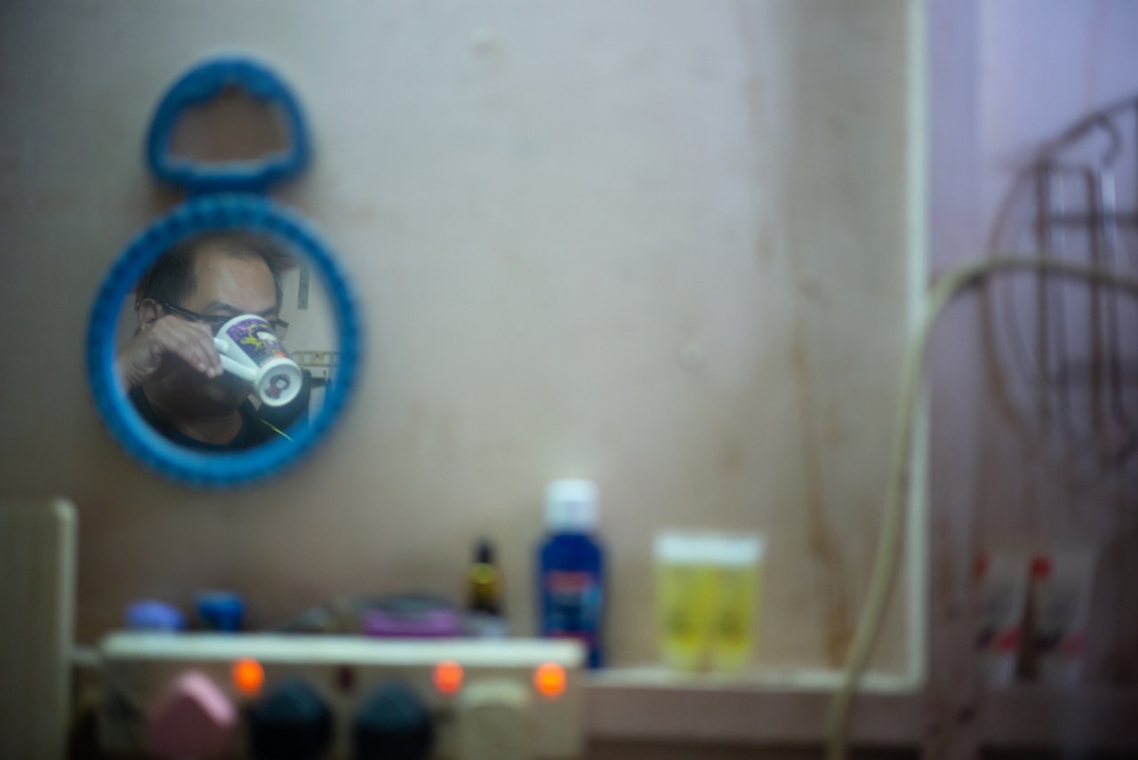 他曾笑着問醫生:「會不會慢到唔識跳?」當下肥仔說得開懷,但離開病床後,無論上落樓梯,還是快步行也會喘氣,雙手雙腳亦容易乏力;加上他去年患上急性青光眼,左眼現時只能看到殘影。他的生活遭身體囚禁起來,每天早上八時多起床到樓下吃過早餐,就走回長方形的「盒子」,坐在床邊看張智霖主演的《如來神掌》劇集直至晚上。肥仔說其他住戶不會視這裏為家,只有自己才會長時間留在這裏。「有些人喜歡到夜晚才回來睡,鄰屋婆婆整屋都堆滿雜物,結果被迫坐着睡覺。」肥仔把房間整理得井然有序,門口旁邊放置煮食爐具、雪櫃,醬料及食具則排放在層架上;單人床及煮食地方以衣櫥作分隔,床邊則放有小型書桌,讓他可以放着電腦看劇集。「長時間留在這裏,要想想辦法讓自己過得舒服點——我自己動手整了這把轉扇,24小時都要開着,否則太過侷促,加上坐地有兩把,這裏總共有三把風扇。」
