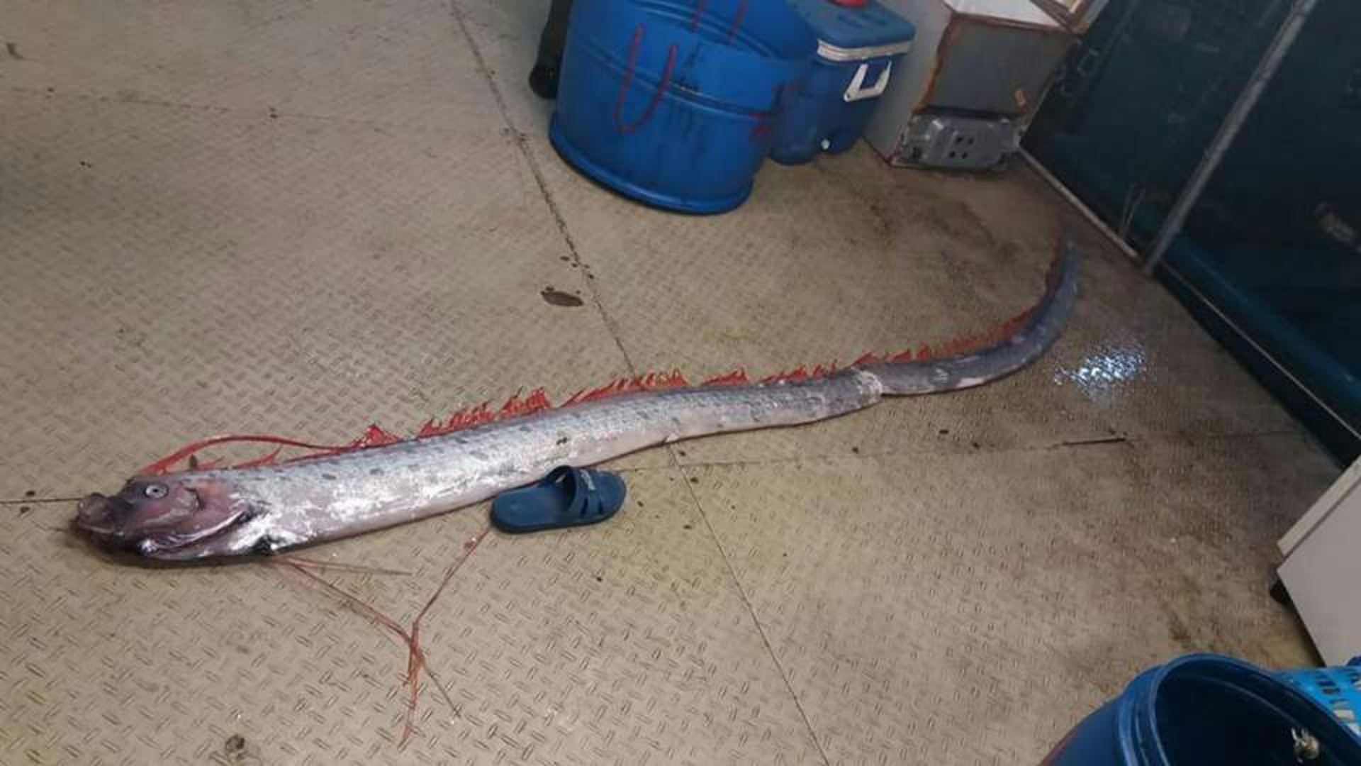 " _2 m0 k9 H6 U0 lTVBNOW 含有熱門話題,最新最快電視,軟體,遊戲,電影,動漫及日常生活及興趣交流等資訊。皇帶魚身體為銀色,特徵是從頭至尾上方有紅色的背鰭,棲息在深海。(香港漁民 - 我們都是水上人家Facebook專頁截圖)