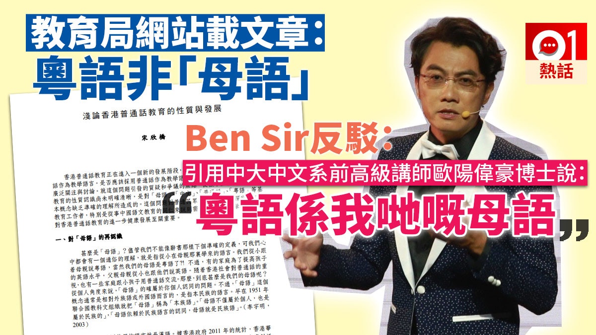 6 u% ]8 J! ~4 G9 b1 p) NTVBNOW 含有熱門話題,最新最快電視,軟體,遊戲,電影,動漫及日常生活及興趣交流等資訊。近日教育局小學中文網頁的教學資源頁面,一篇題為「淺論香港普通話教育的性質與發展」的文章在網上引起熱論,文章中提到粵語並非「母語」,香港人的母語應為漢語,即為普通話。中大中文系前高級講師歐陽偉豪博士(Ben Sir)今日在網上回應,質疑教育局引用權威失準,並有矮化粵語的動機,他強調「粵語係我哋嘅母語」。
