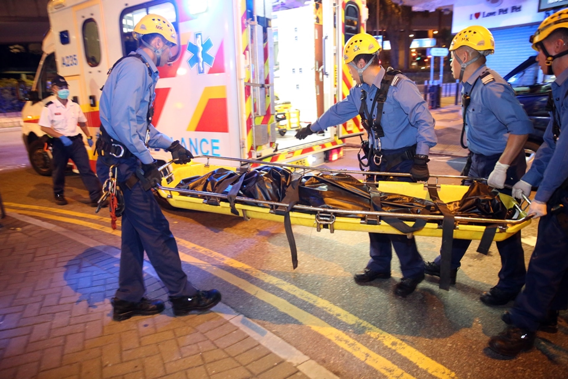 2 I( u5 q/ D$ Gtvb now,tvbnow,bttvb消防員用黑袋包裹事主,將其送上救護車。(陳永武攝), n! t6 m% h$ o- @