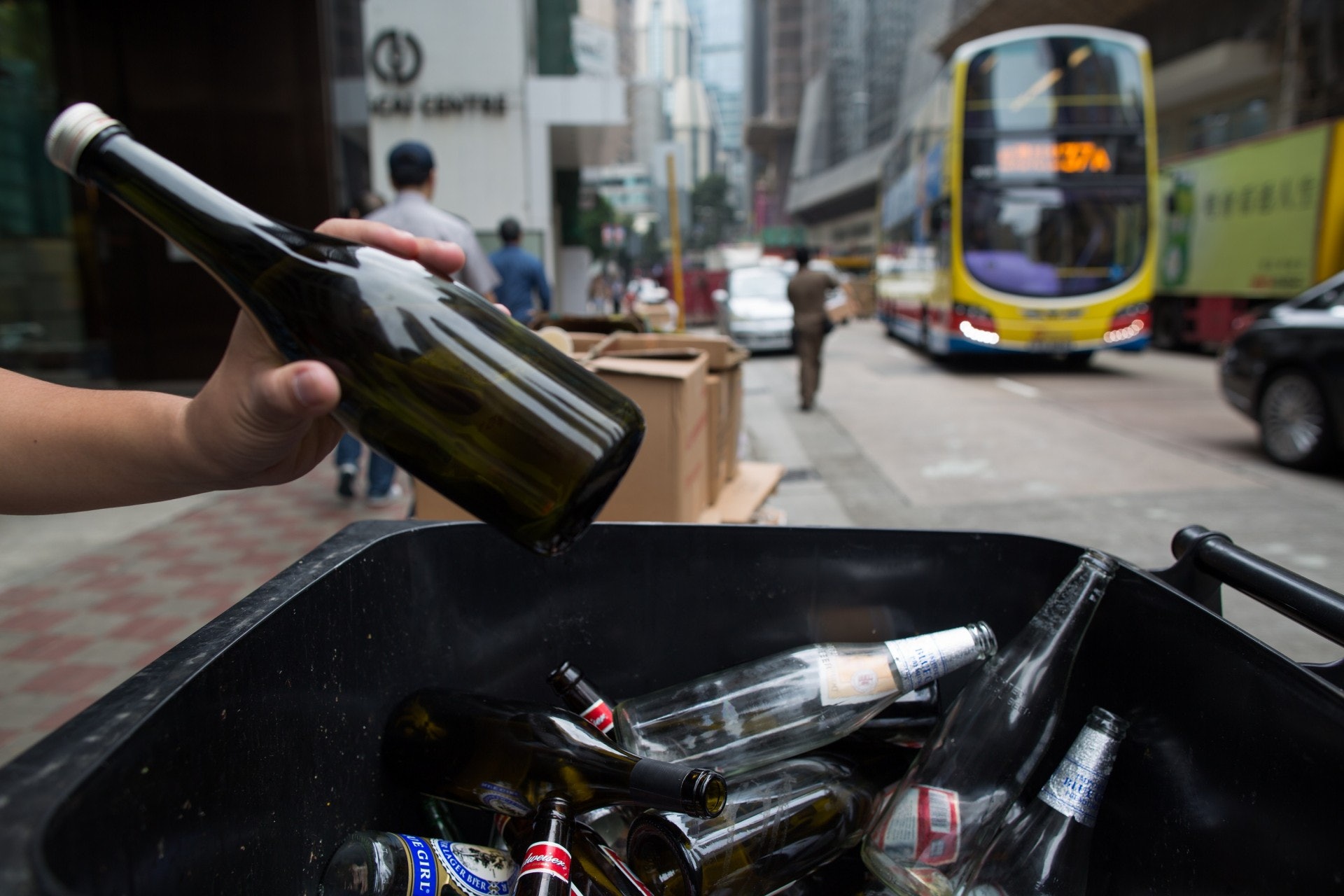 ) a1 M) A% Q. N! P, S7 ios.tvboxnow.com玻璃樽徵費料於2019年年中推行,每公升容器擬收費一元。(資料圖片/高仲明攝)