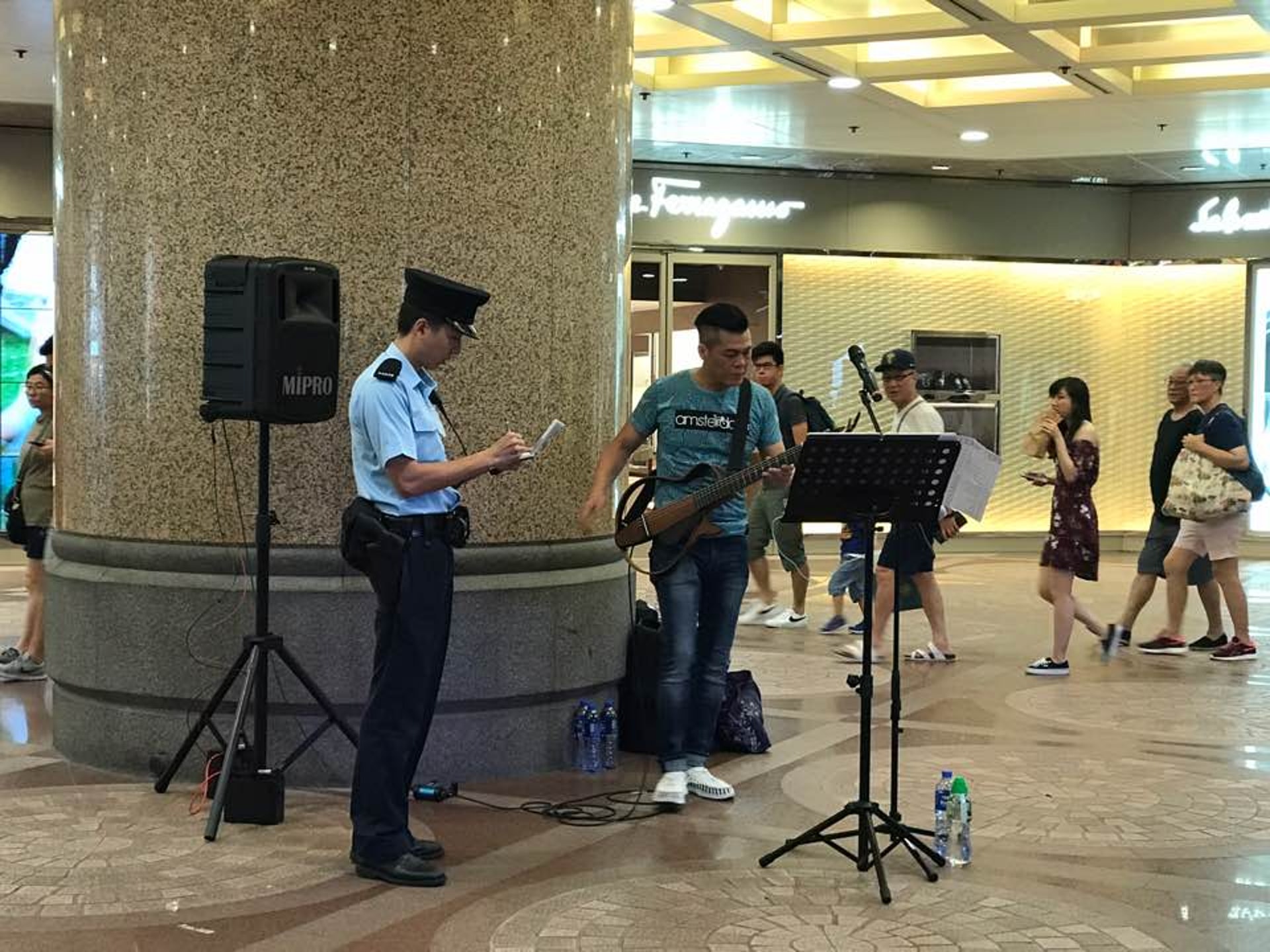 時代廣場亦派出保安員,每小時走近演出者附近量度噪音分貝。(梁煥敏攝)' |3 _- W; D! L8 v0 m" | ^