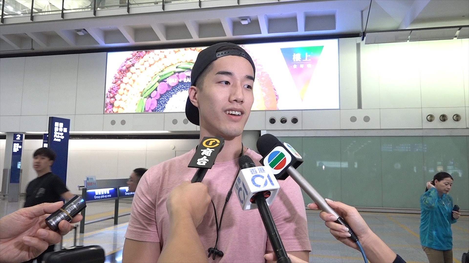 到港旅遊的日本學生竣介傍晚到港,他稱因颱風關係,關西機場關閉,於是他與友人從大阪乘鐵路到名古屋,額外加1500日圓把機票轉至名古屋機場出發。他指鐵路服務沒有因天氣受到影響,但形容在大阪的時候感受到颱風的恐怖,巨風加上暴雨,他感到非常「可怕」(scary)。